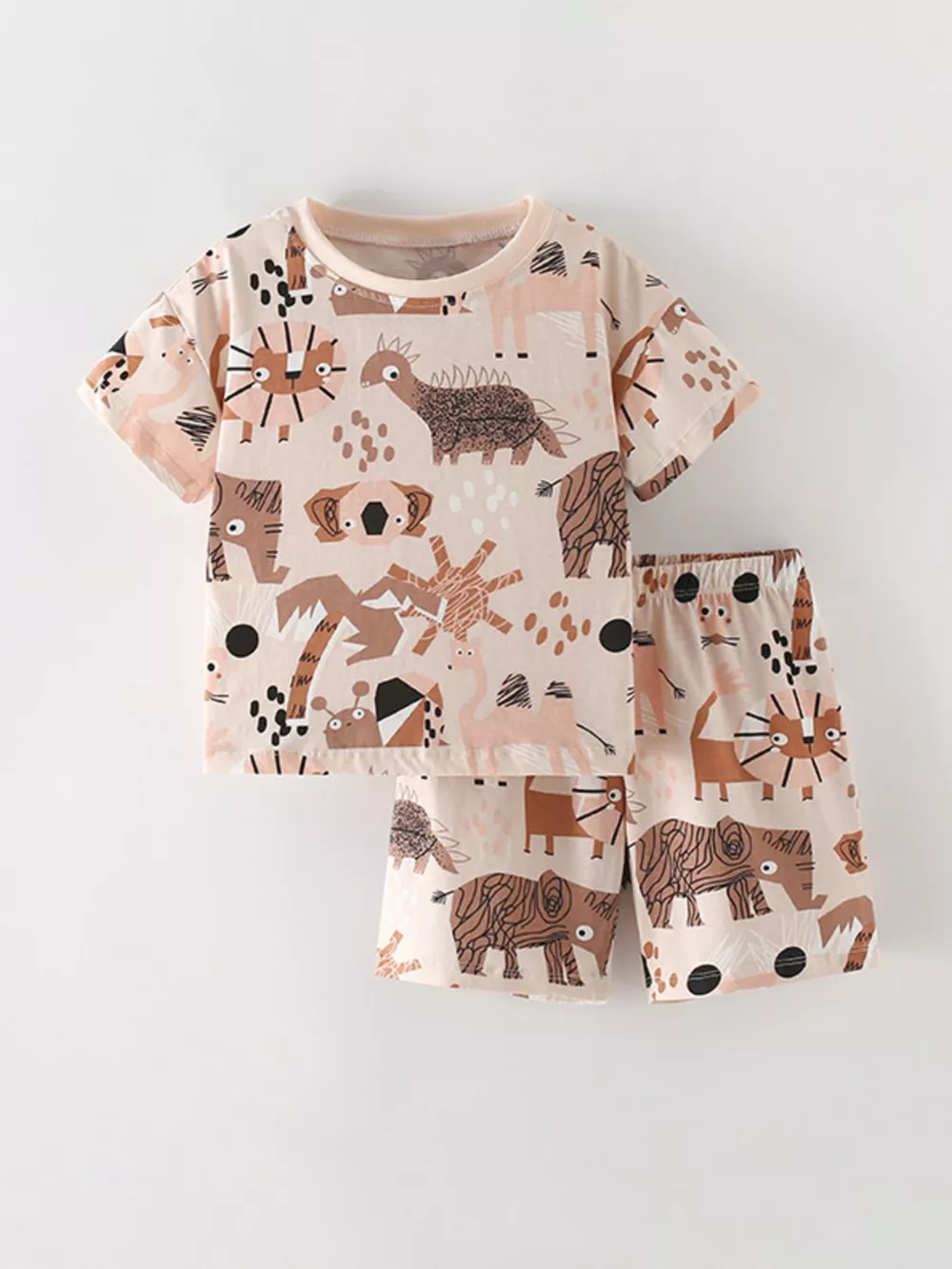 Children's Animal Print Round Neck Tee and Shorts Set