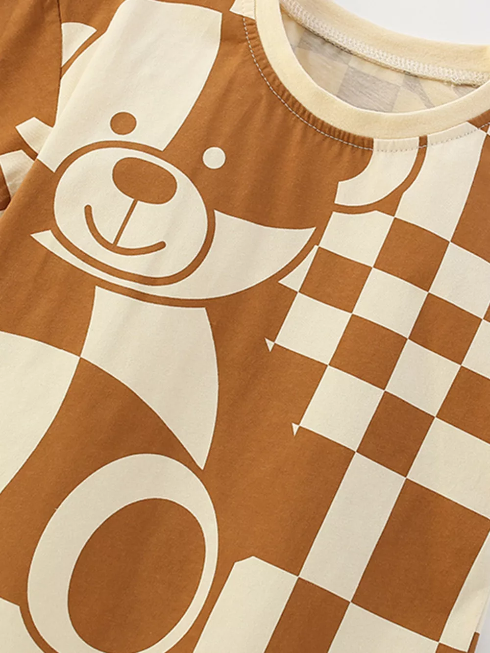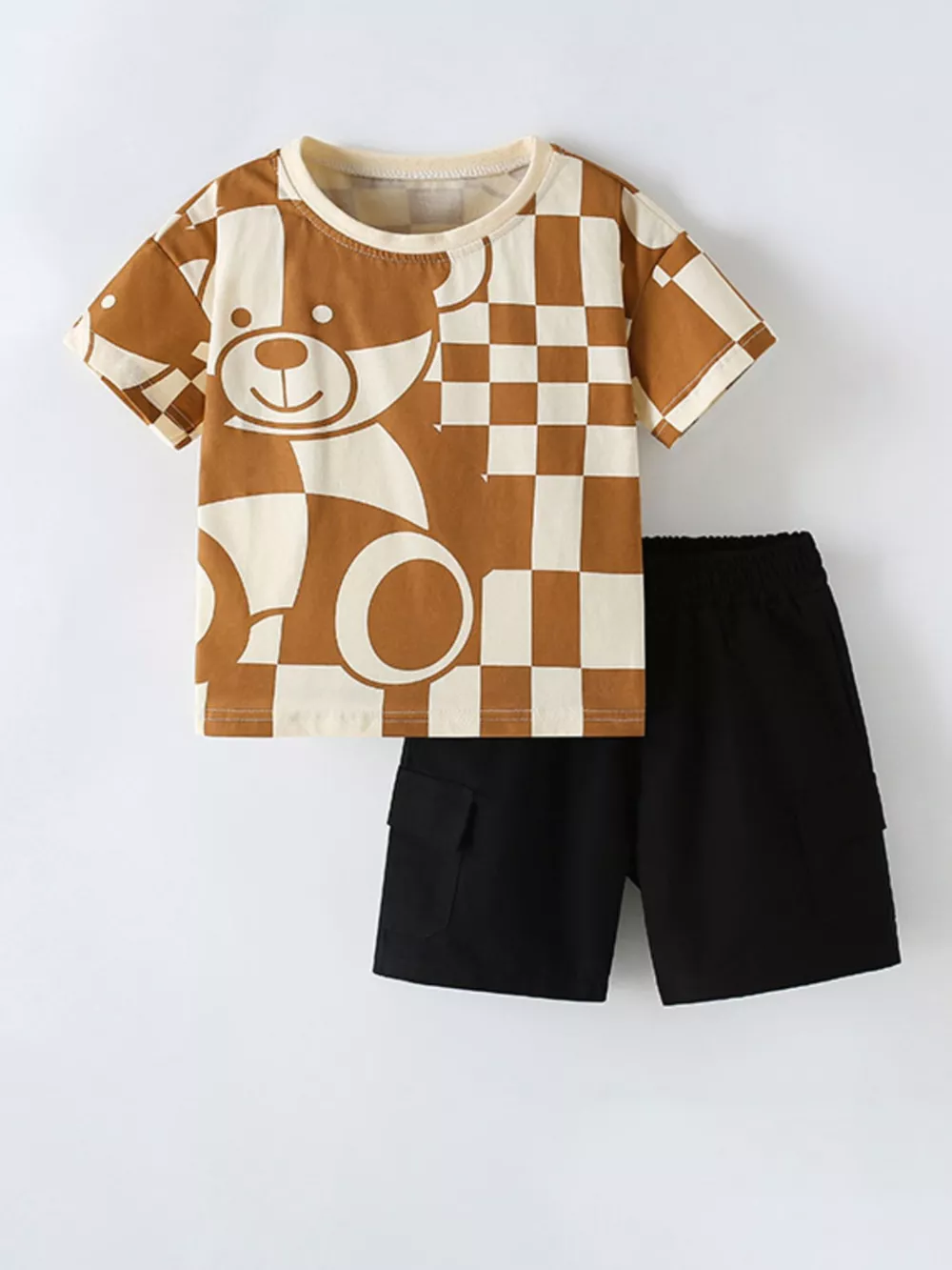 Children's Checkerboard Bear Print Casual Kids Set