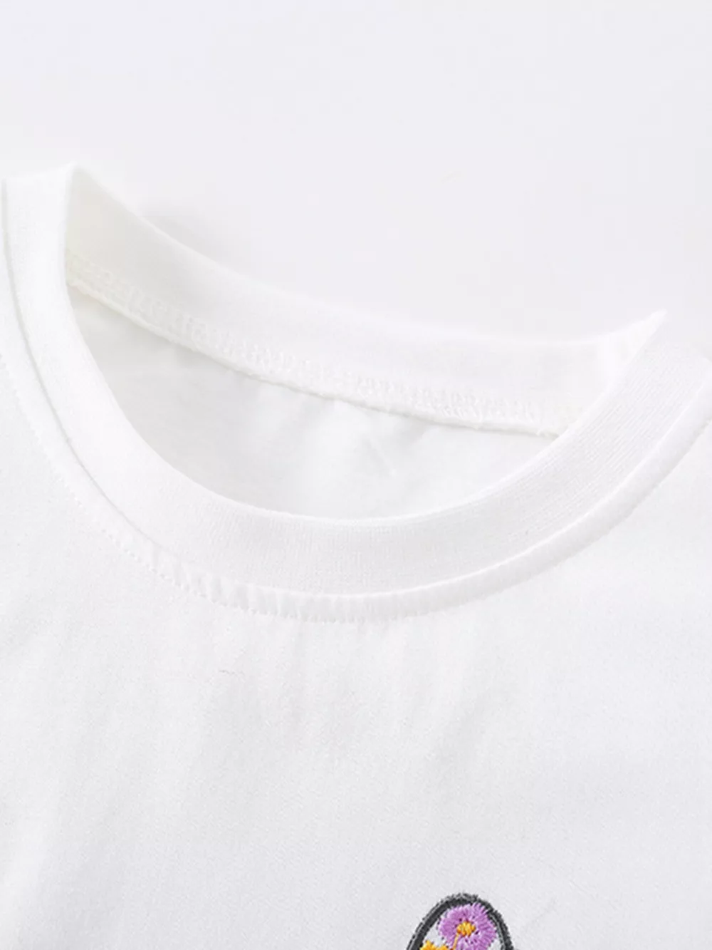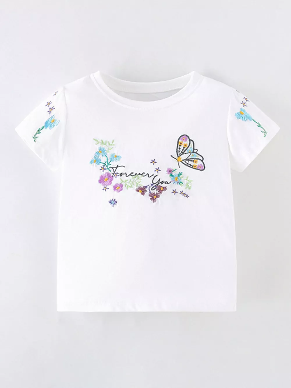Children's Floral Butterfly Embroidered Short Sleeve T-Shirt