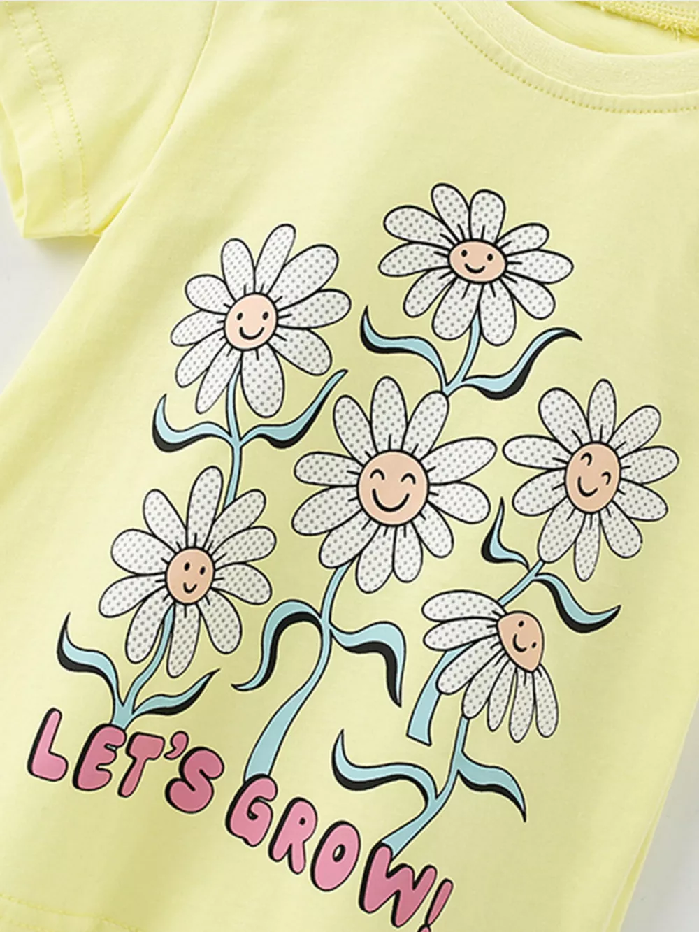 Children's Cute Daisy Print Graphic Sleeve T-Shirt