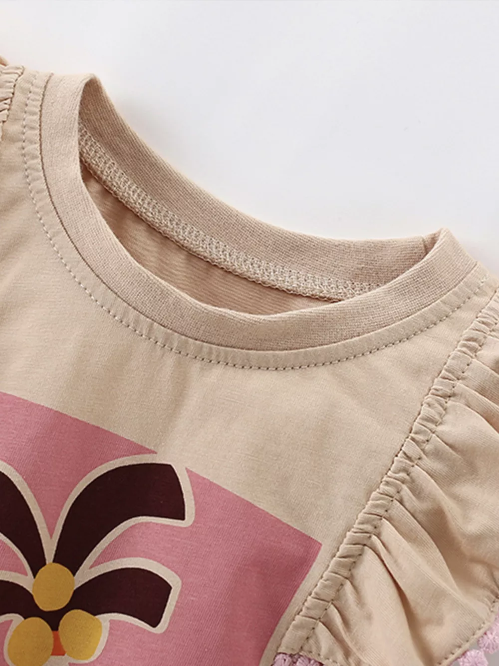 Children's Sleeveless Palm Tree Graphic T-Shirt with Ruffle Trim
