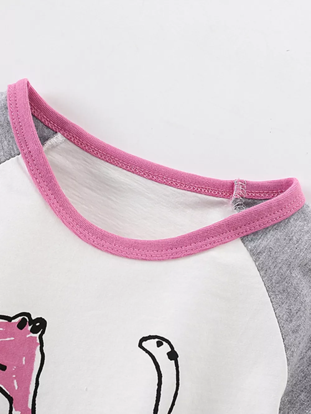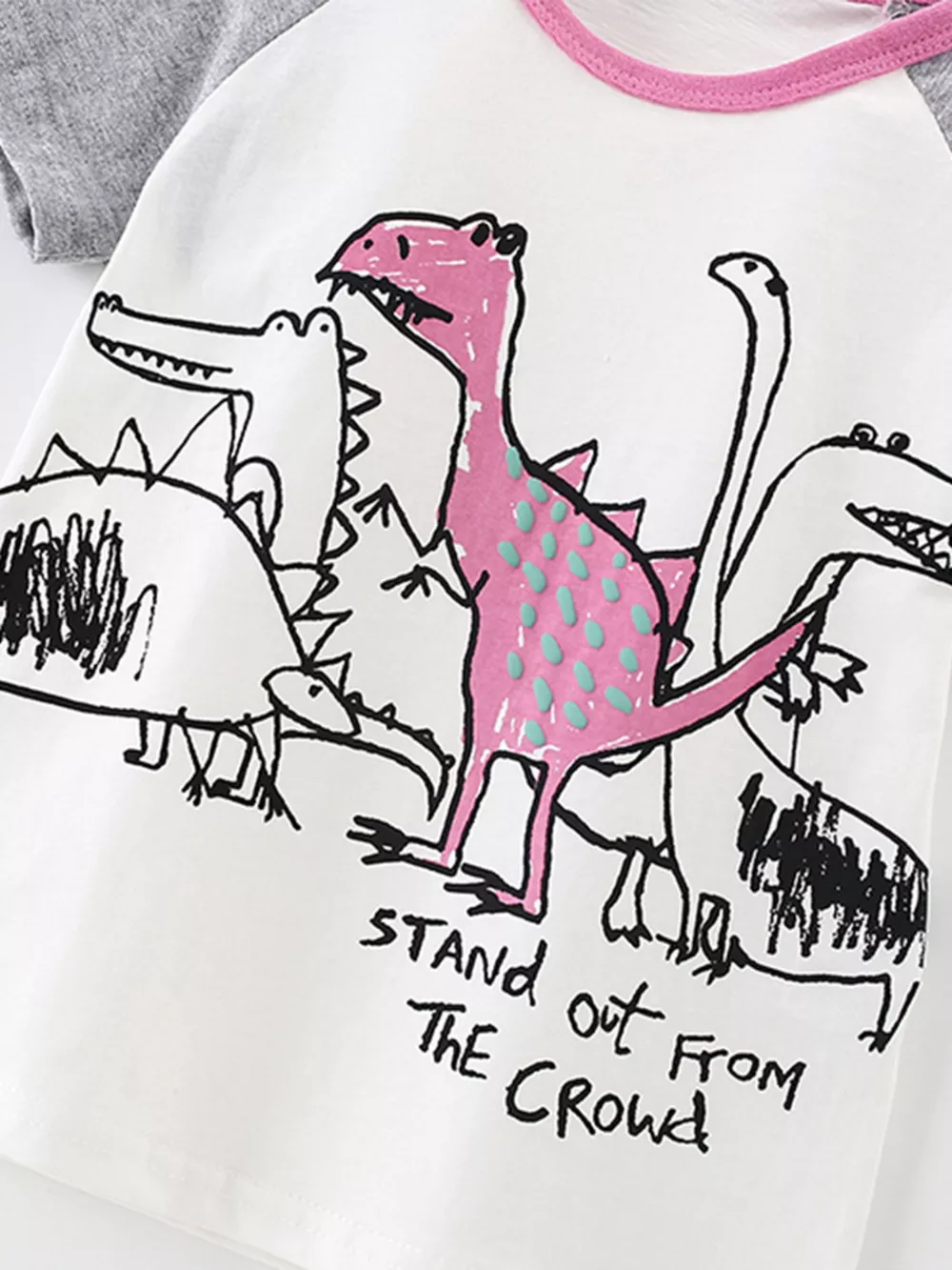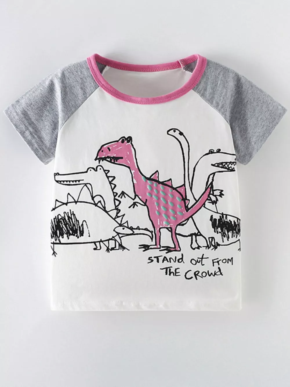 Children's Dinosaur Crew Neck Contrast Short Sleeve T-Shirt