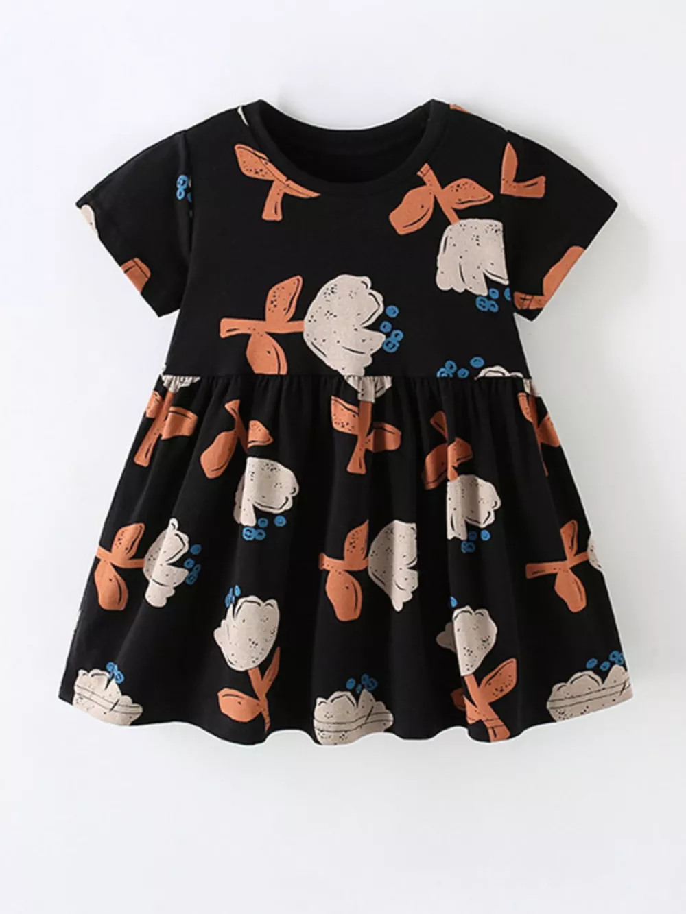 Children's Floral Print Short Sleeve Dress