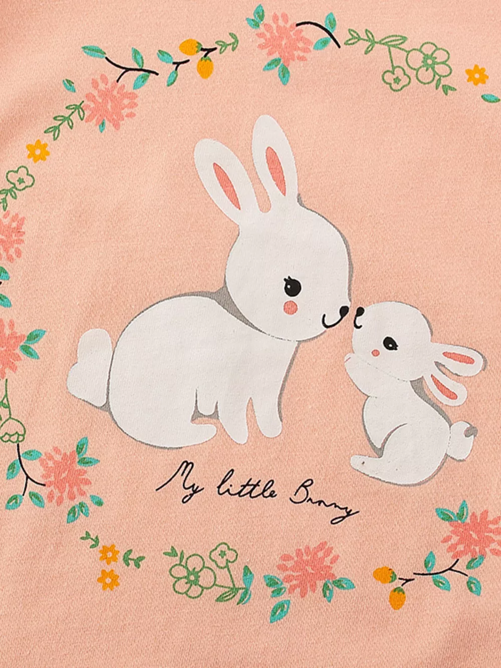 Children's Cute Bunny Graphic Top and Floral Pants Set