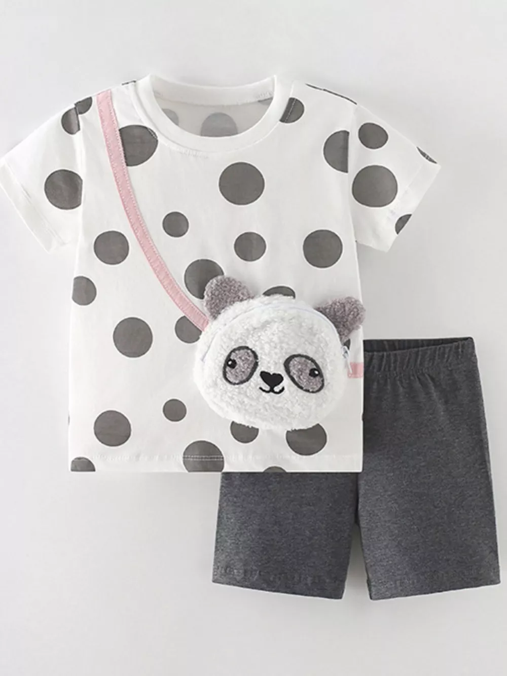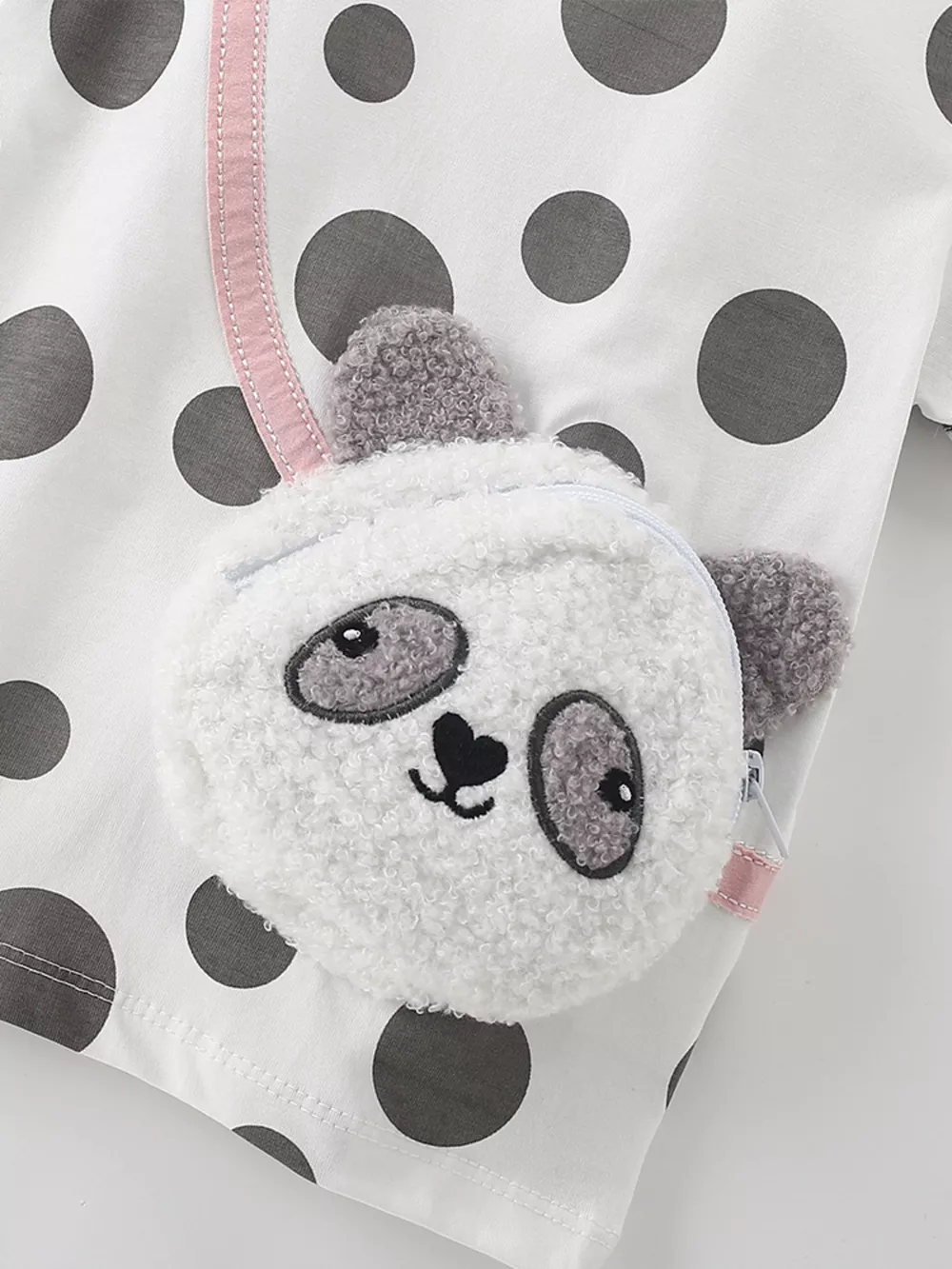 Children's Panda Bag Polka Dot T-Shirt & Shorts Set