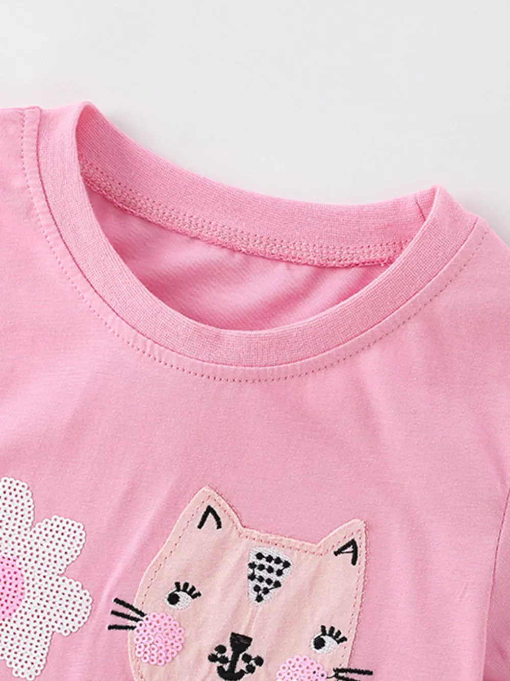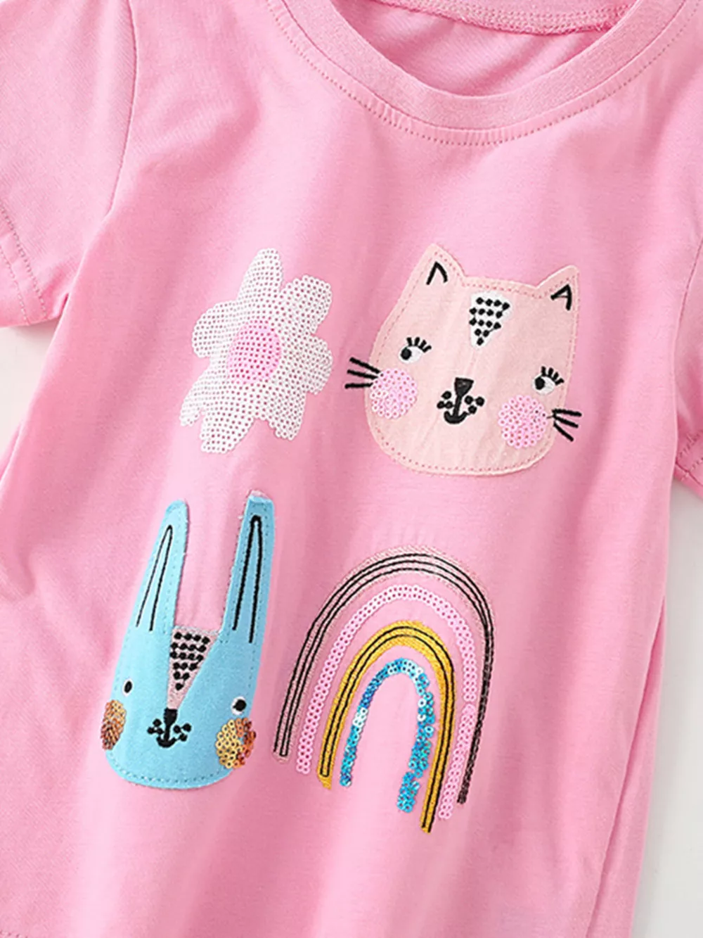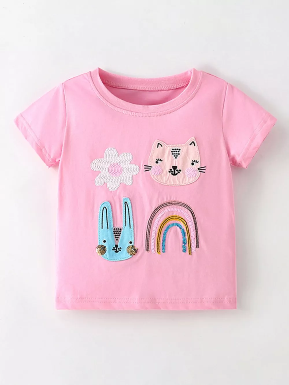 Children's Cute Cartoon Applique Short Sleeve T-Shirt