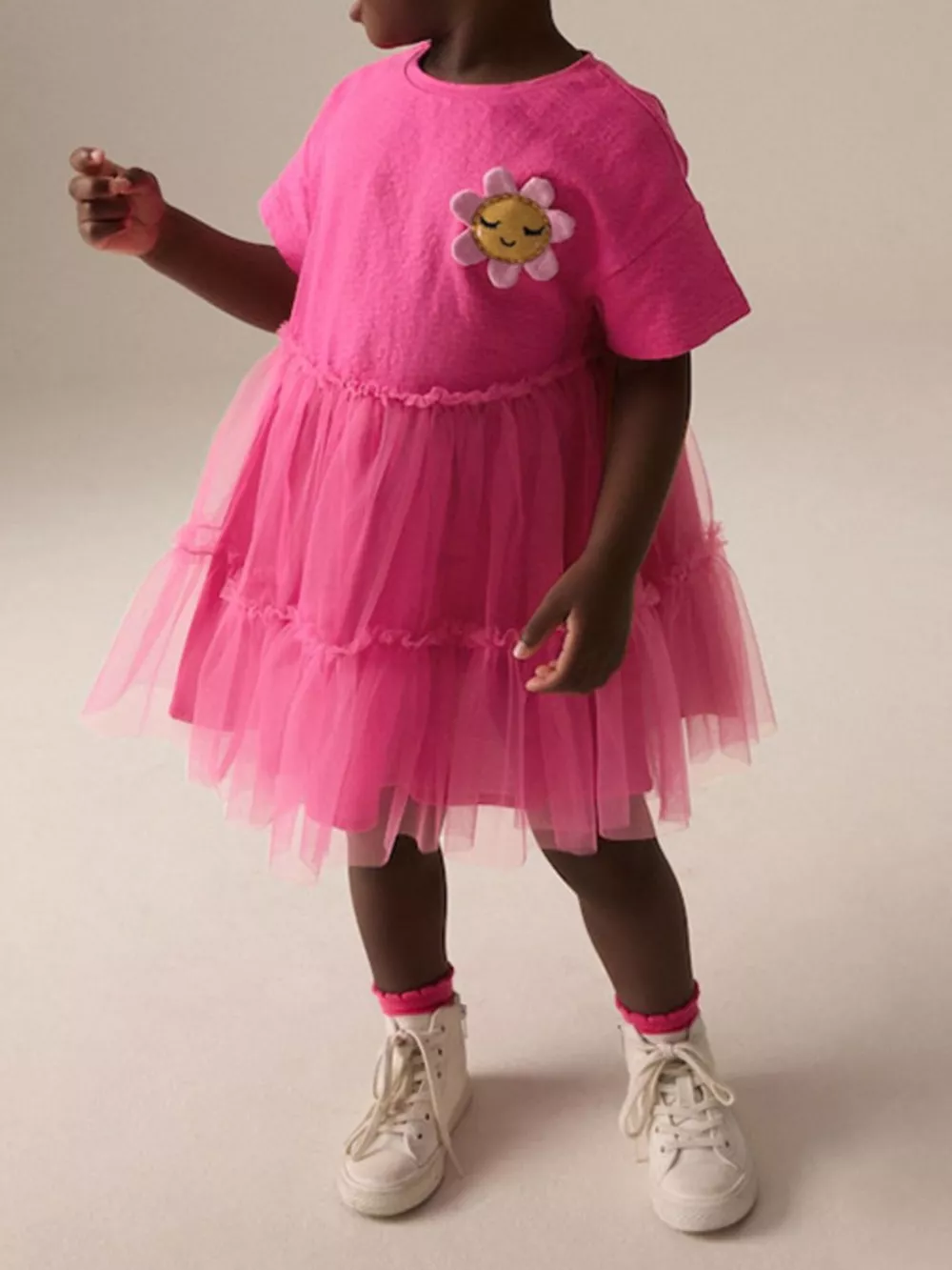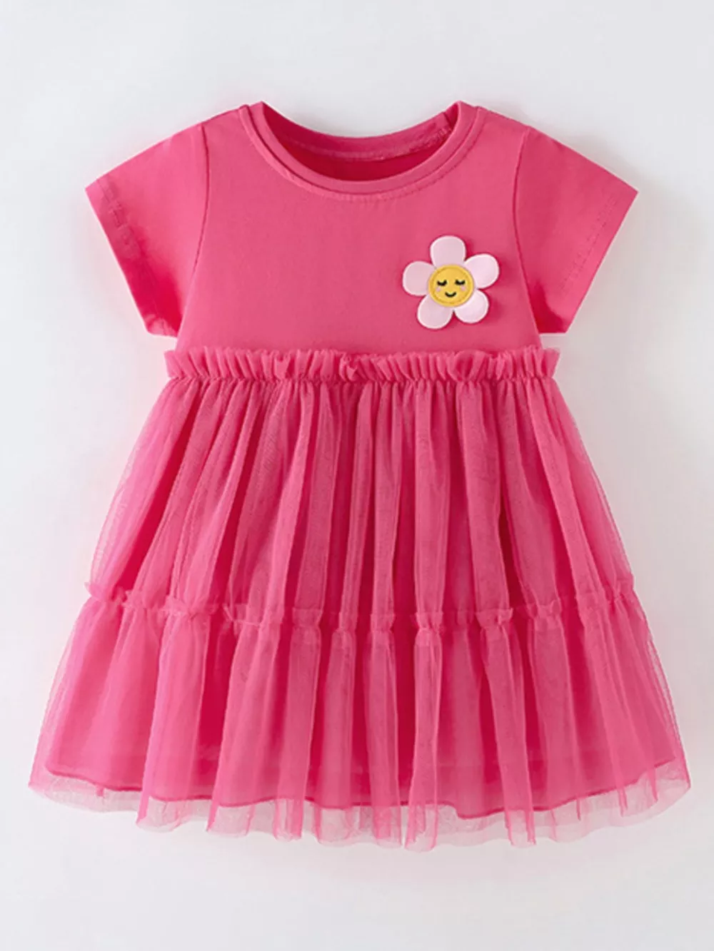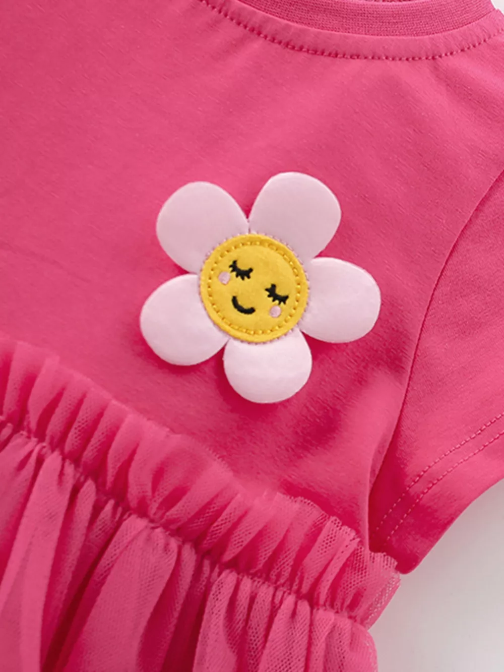 Children's Cute Flower Applique Tulle Layered Dress