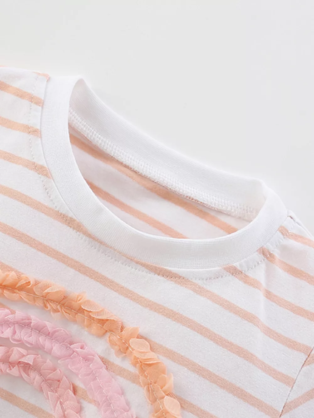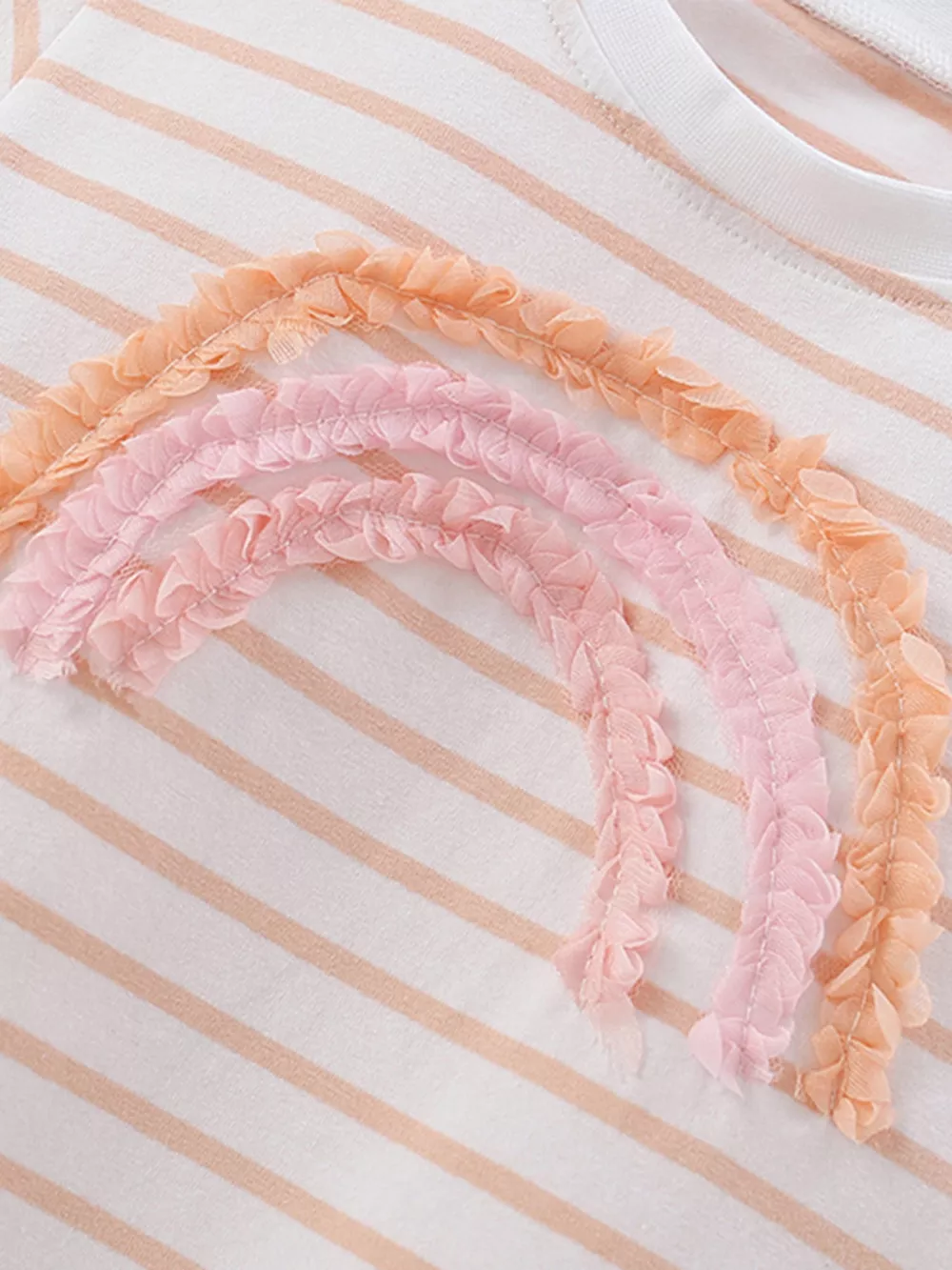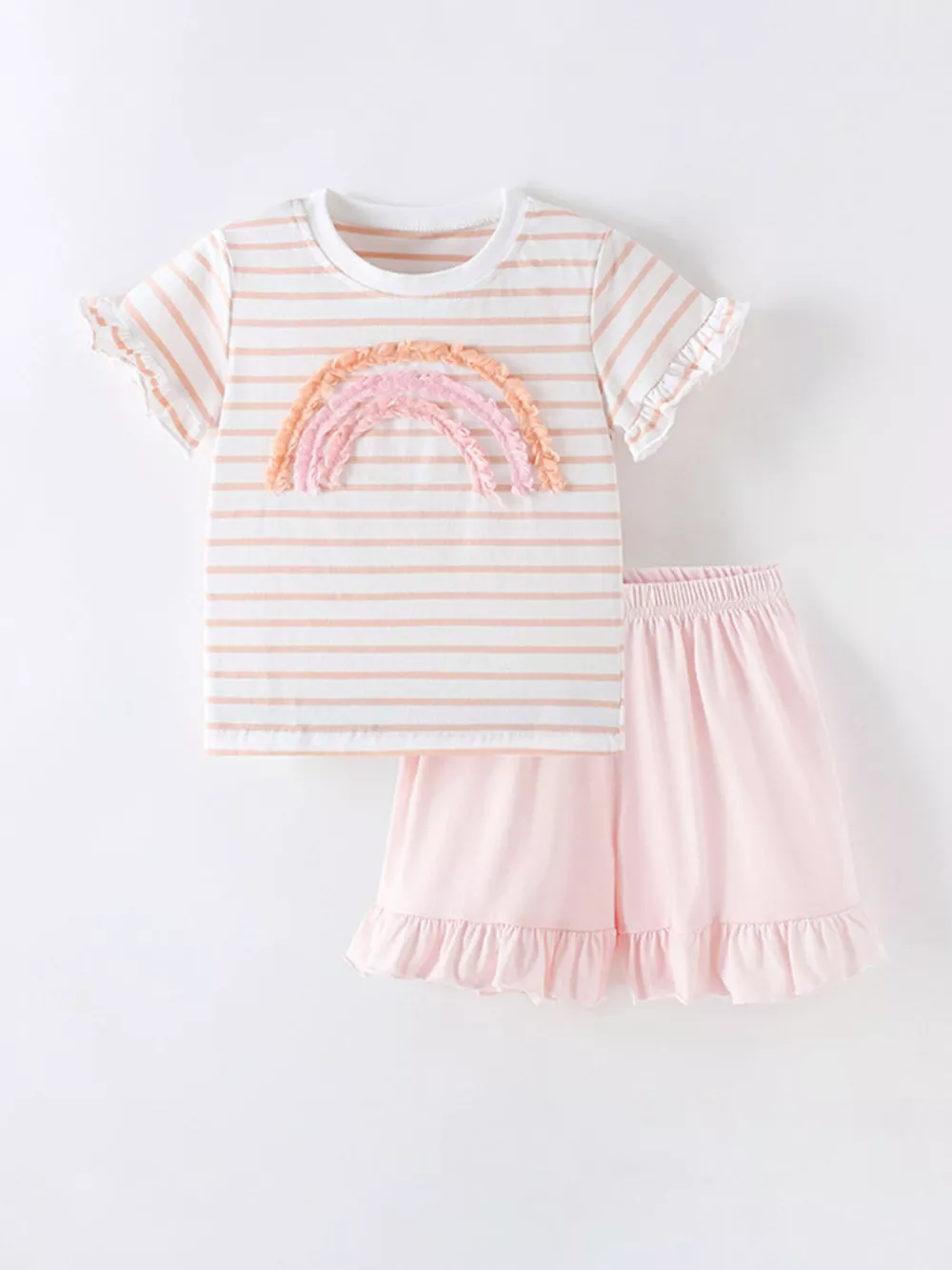 Children's Rainbow Striped Ruffle Trim Tee and Shorts Set