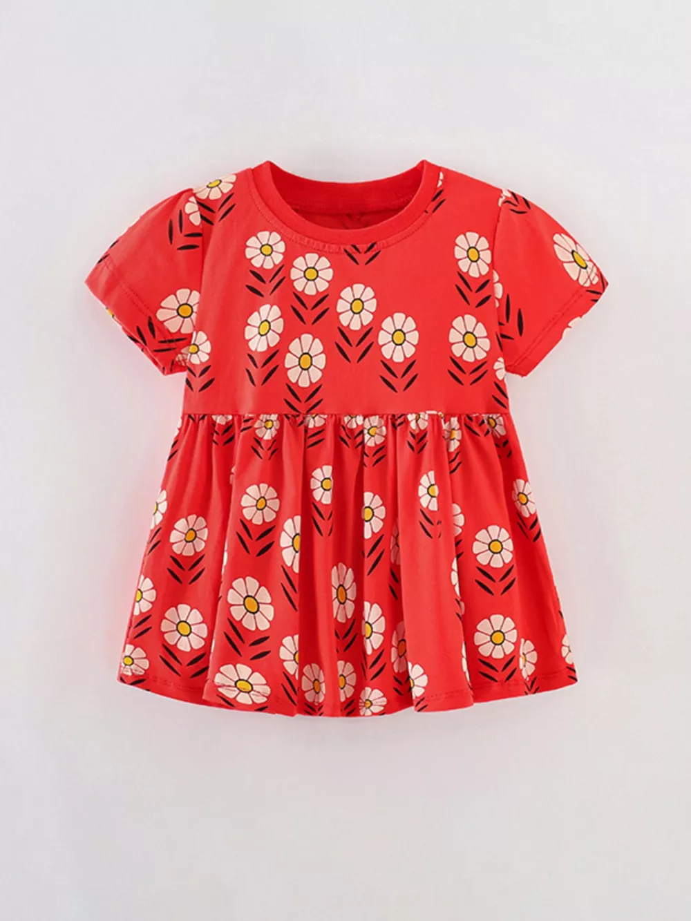 Children's Floral Print Short Sleeve Dress