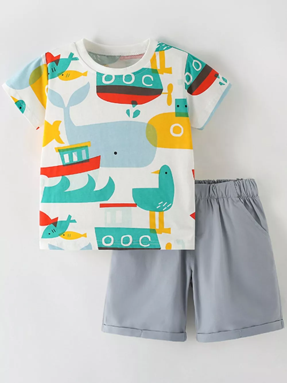 Children's Cartoon Print T-Shirt and Shorts Set