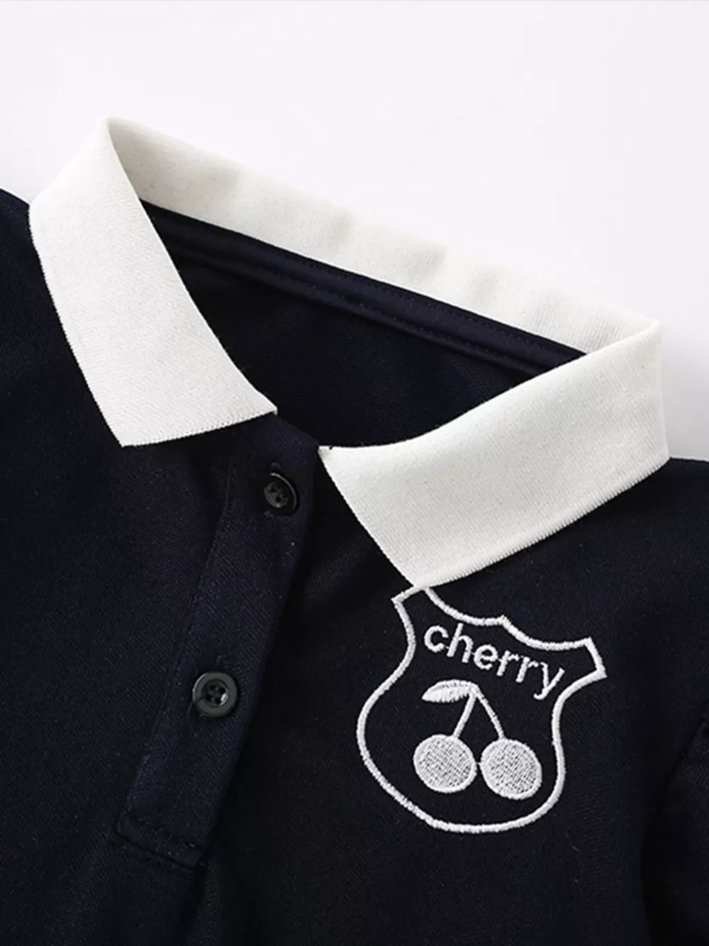 Children's Cherry Embroidered Polo Shirt and Pleated Skirt Set