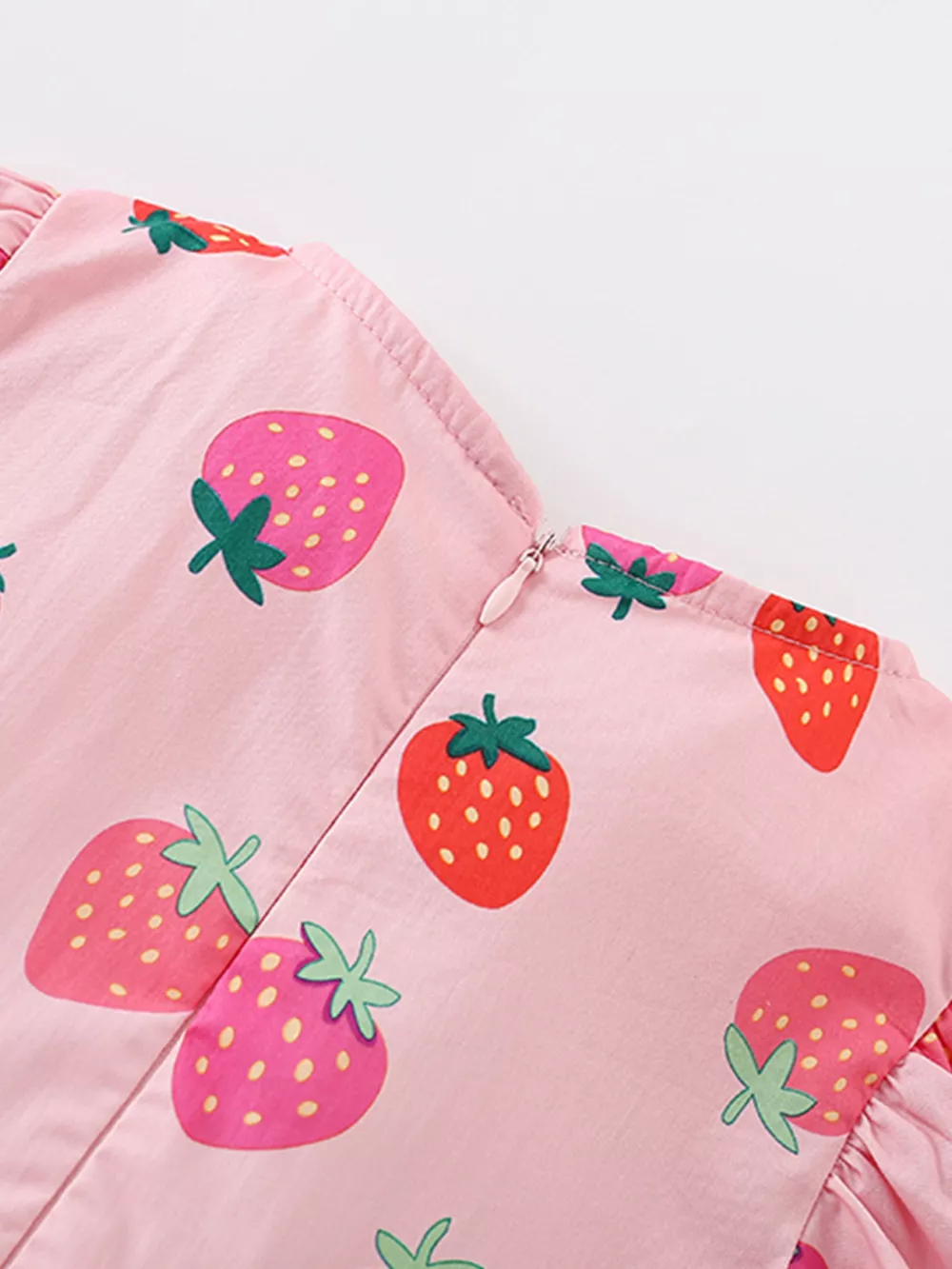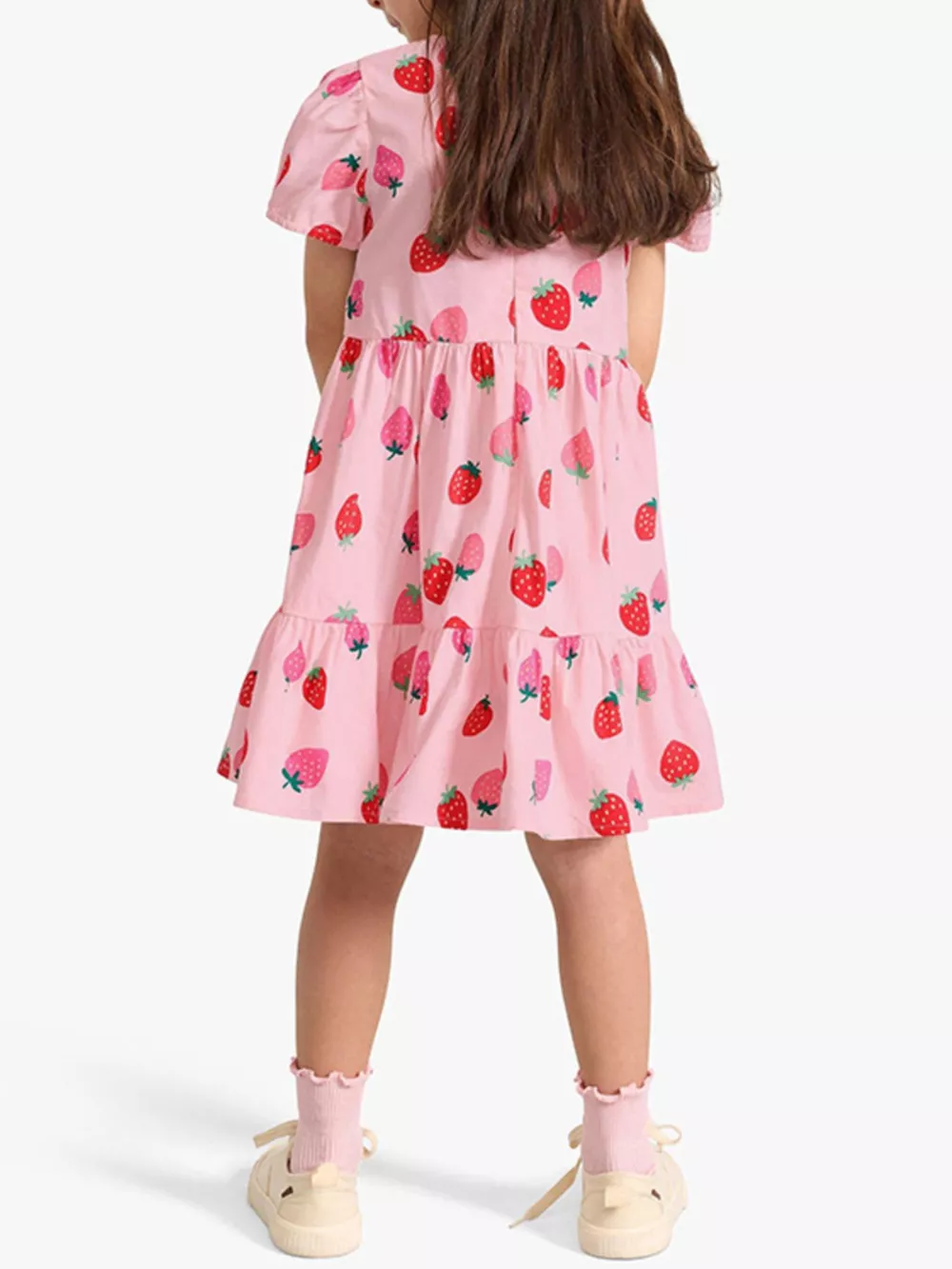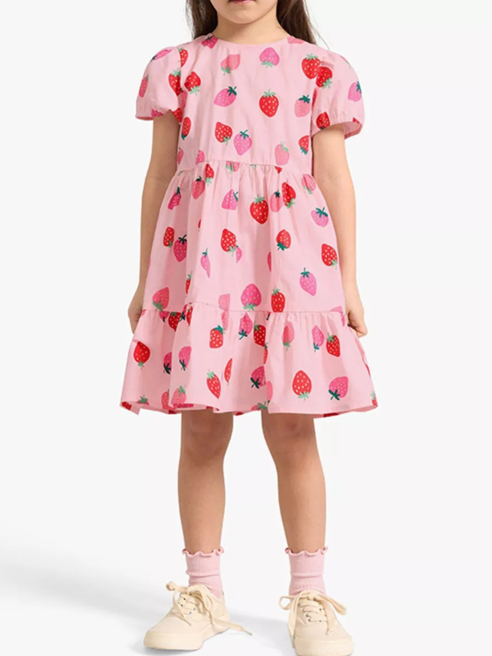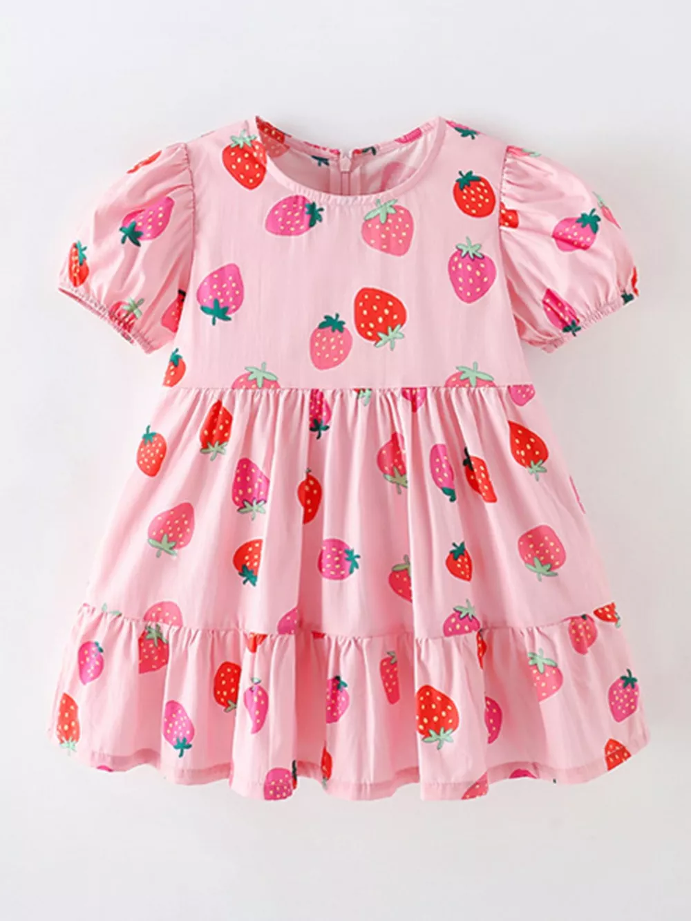 Children's Strawberry Print Tiered Puff Sleeve Dress