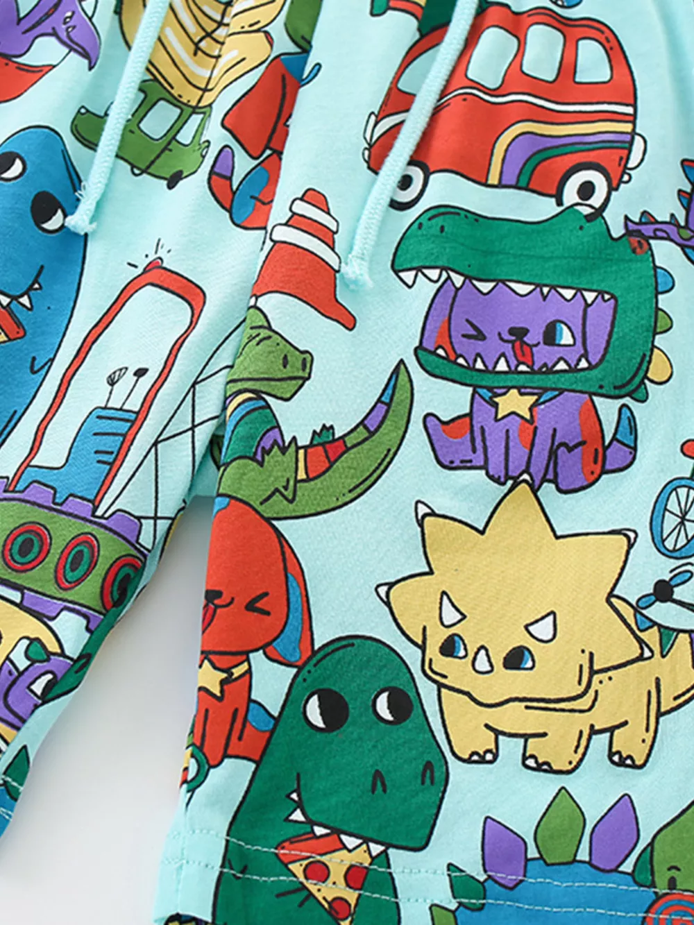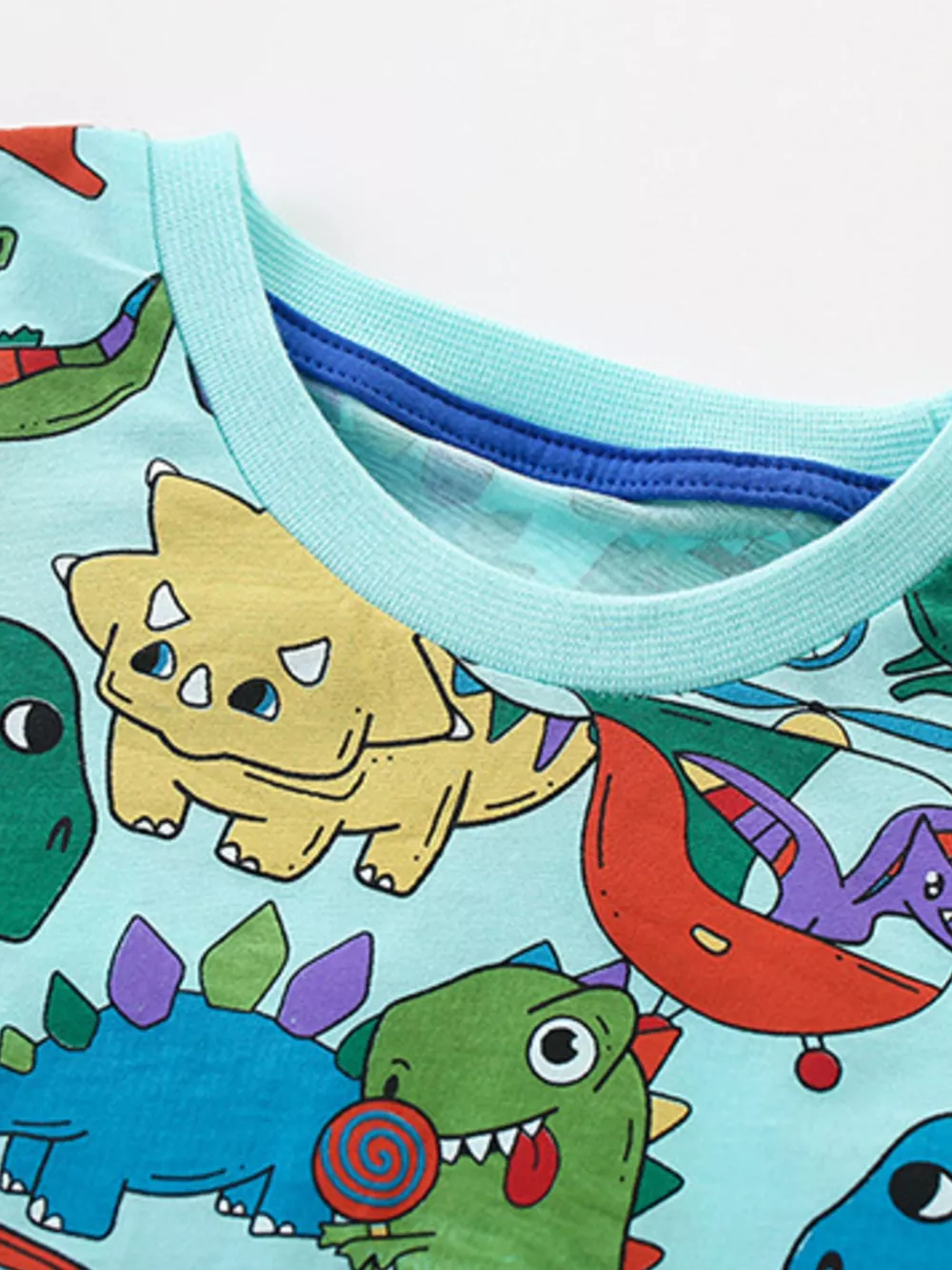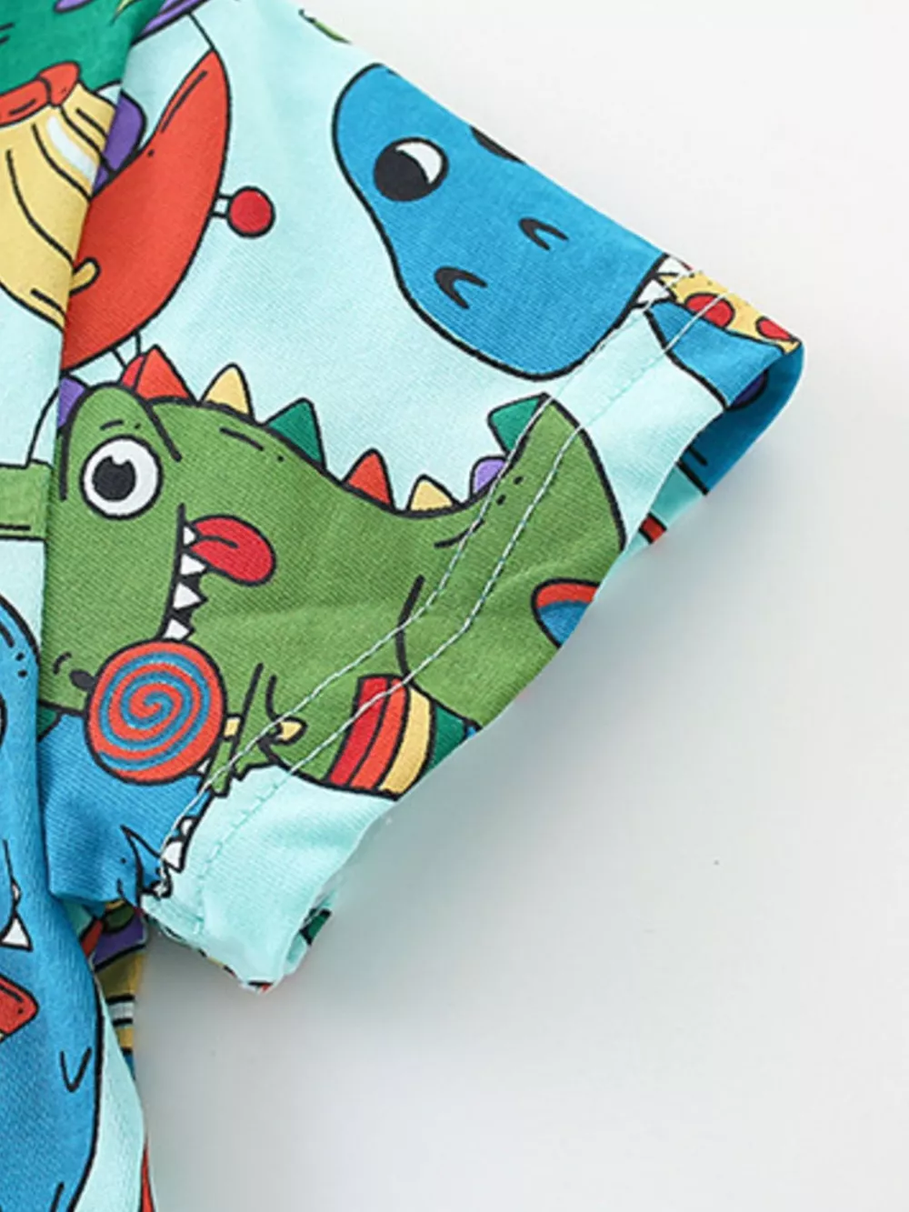 Children's Cartoon Dinosaur Round Neck Top and Shorts Set