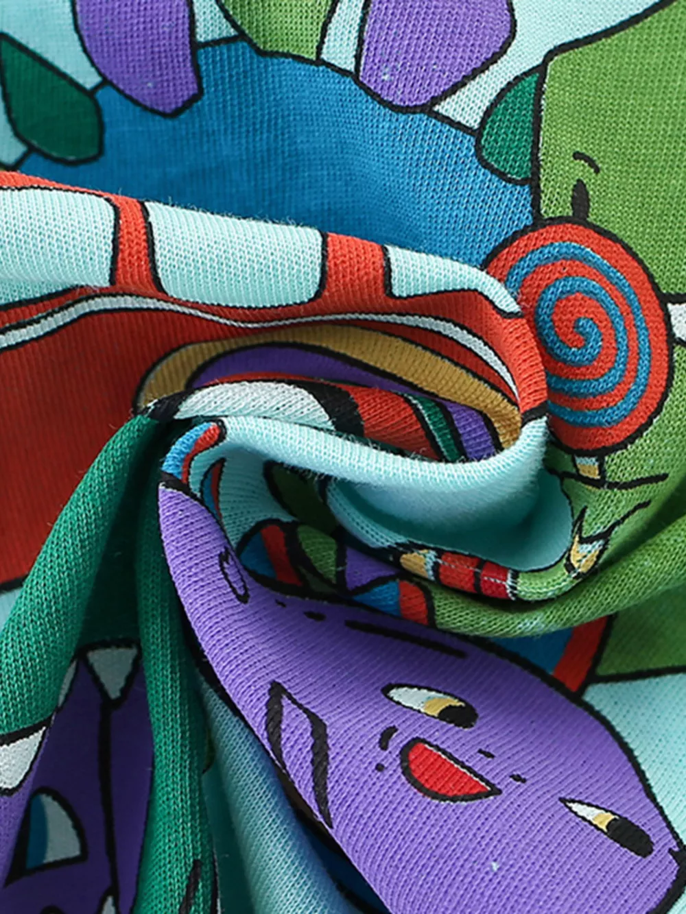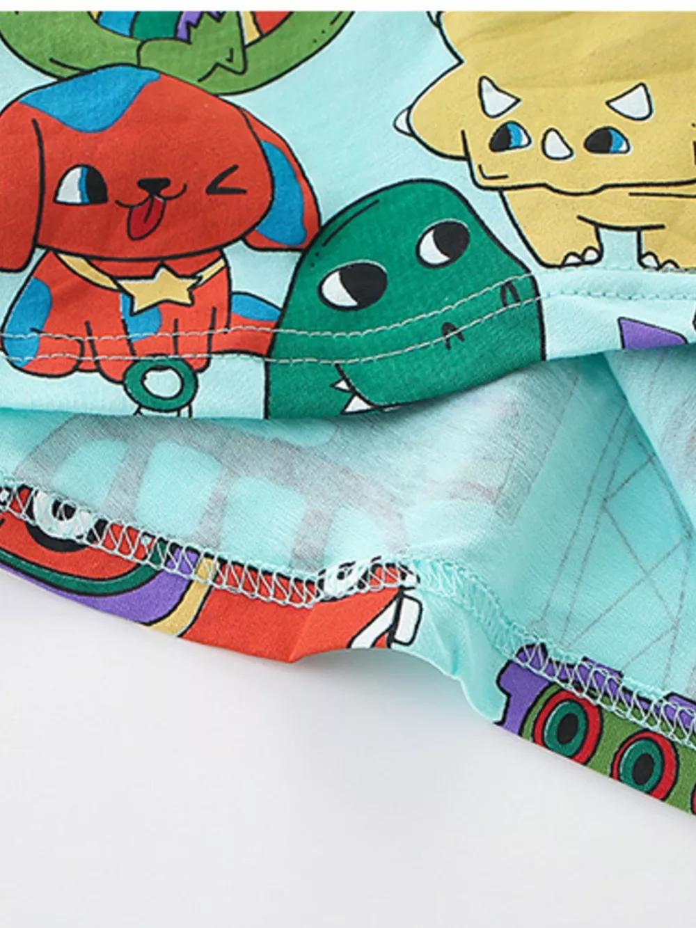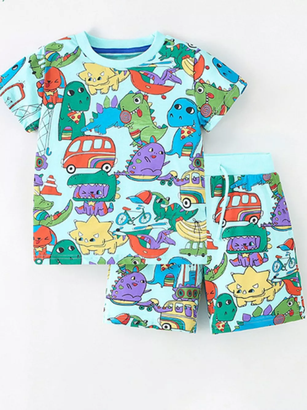 Children's Cartoon Dinosaur Round Neck Top and Shorts Set