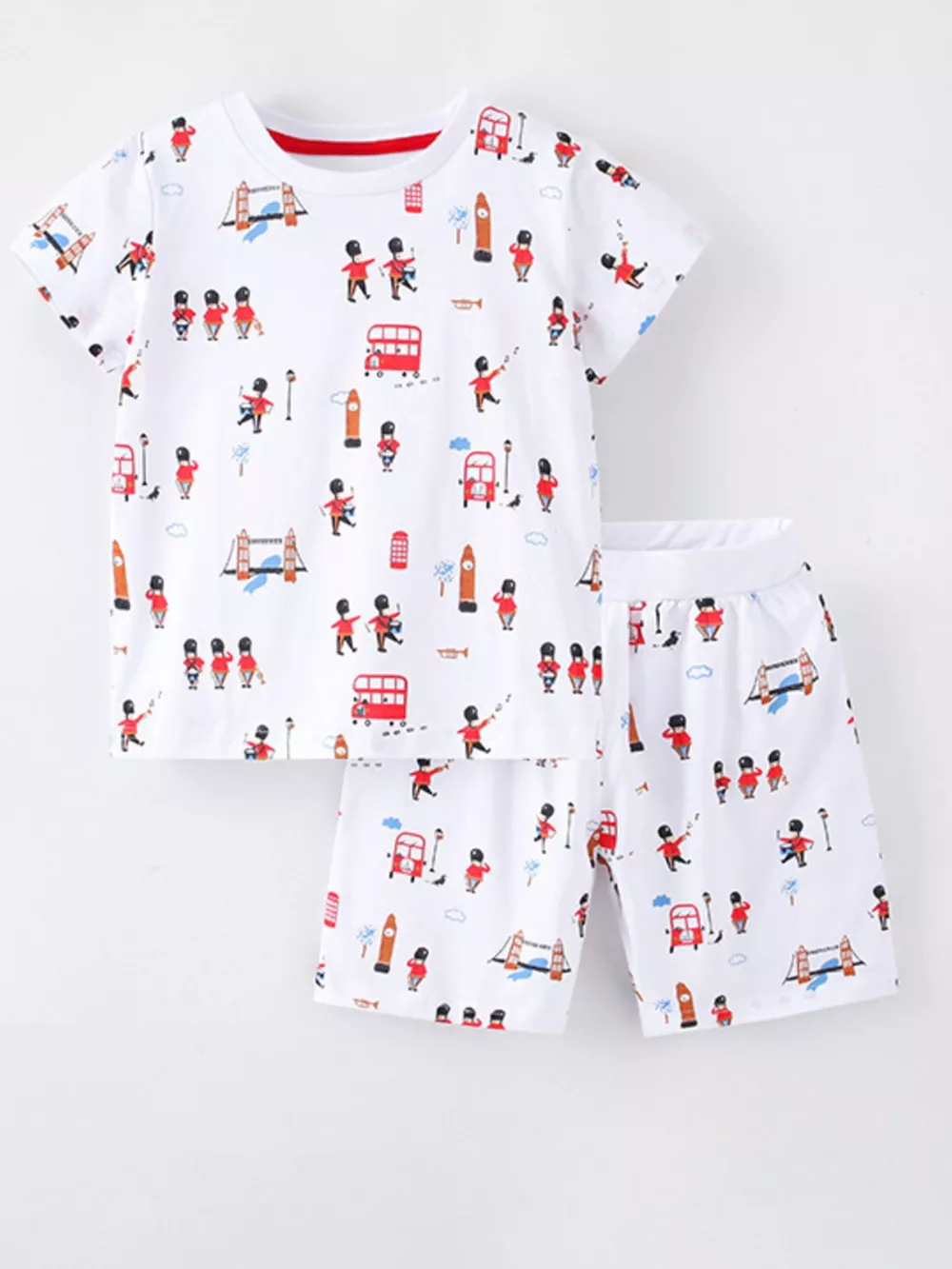 Children's Printed Round Neck Tee and Shorts Set
