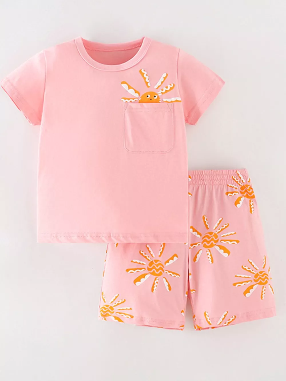 Children's Sun Round Neck Top and Shorts Set