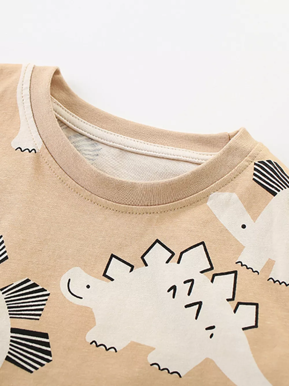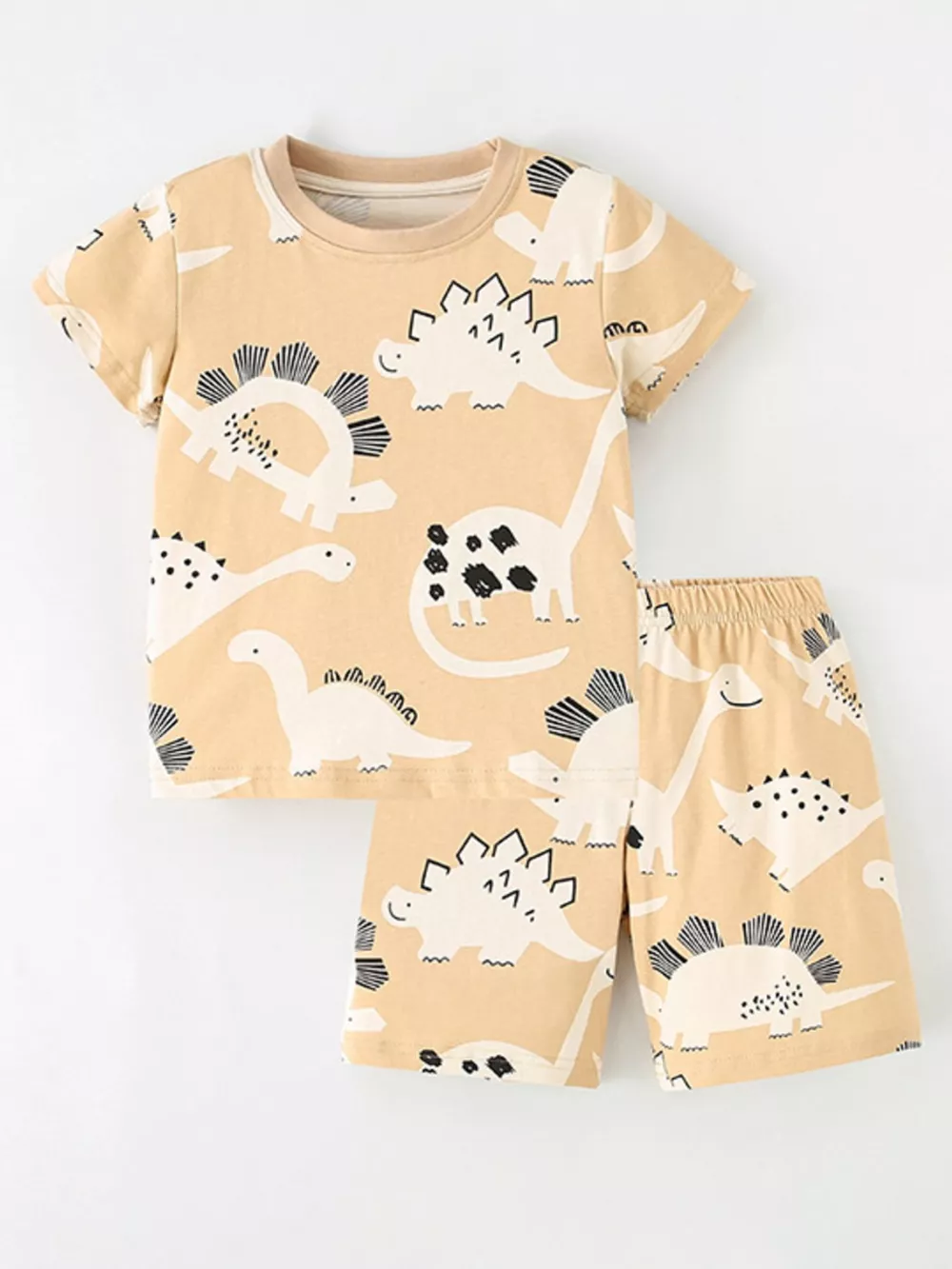 Children's Dinosaur Print Round Neck Top and Shorts Set