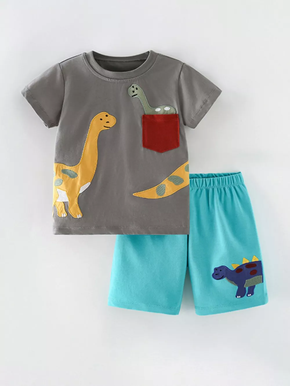 Children's Dinosaur Applique T-Shirt and Shorts Set