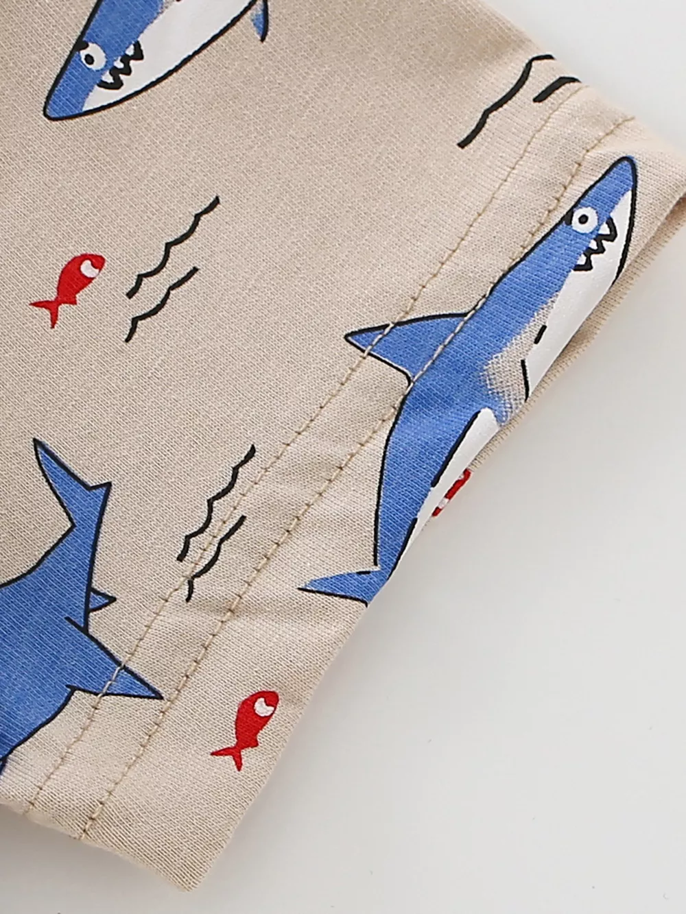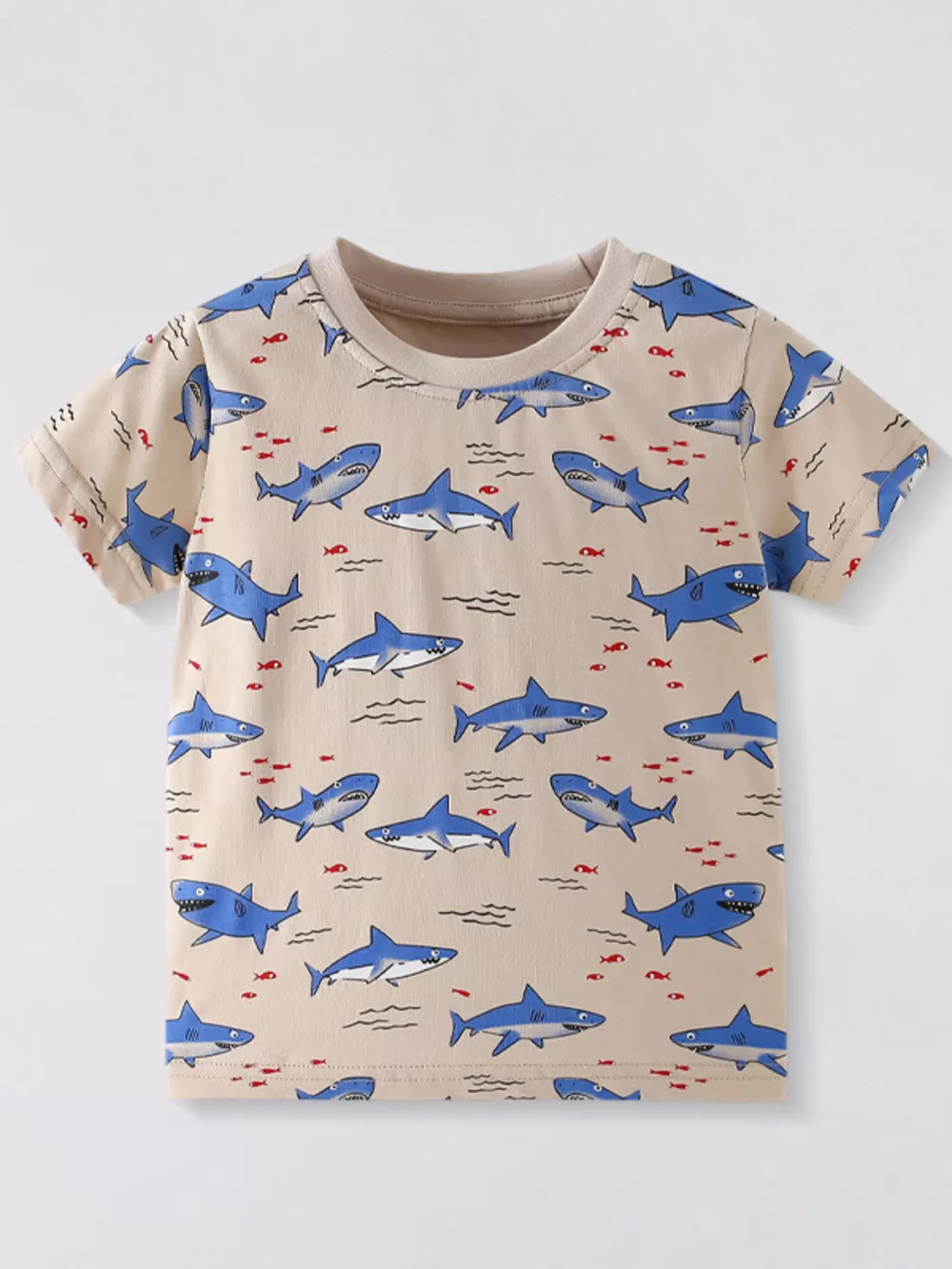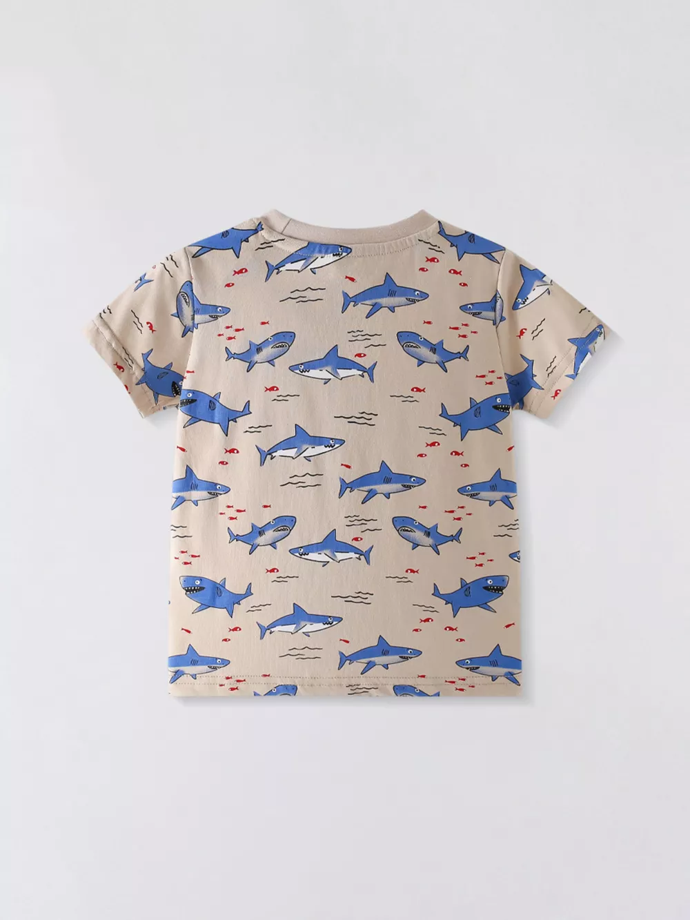 Children's Shark Print Crew Neck Short Sleeve T-Shirt