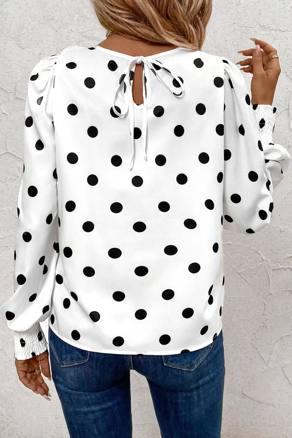 Polka Dot Print Round Neck Frilled Long Sleeve Blouse