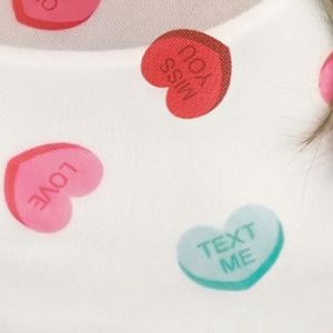 Sheer Mesh Valentines Slogan Heart Printed Long Sleeve Top