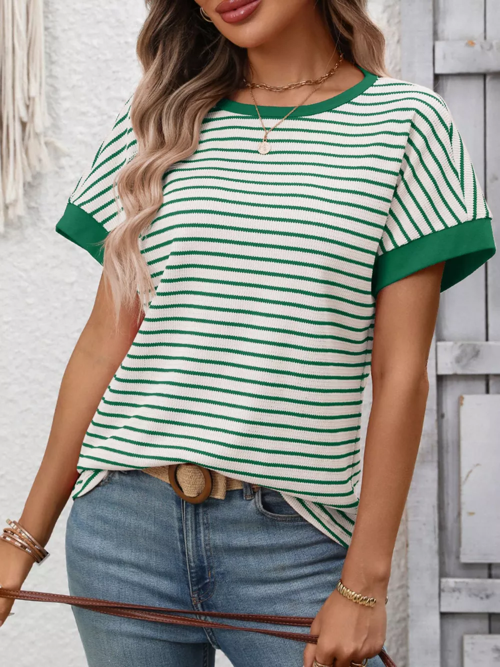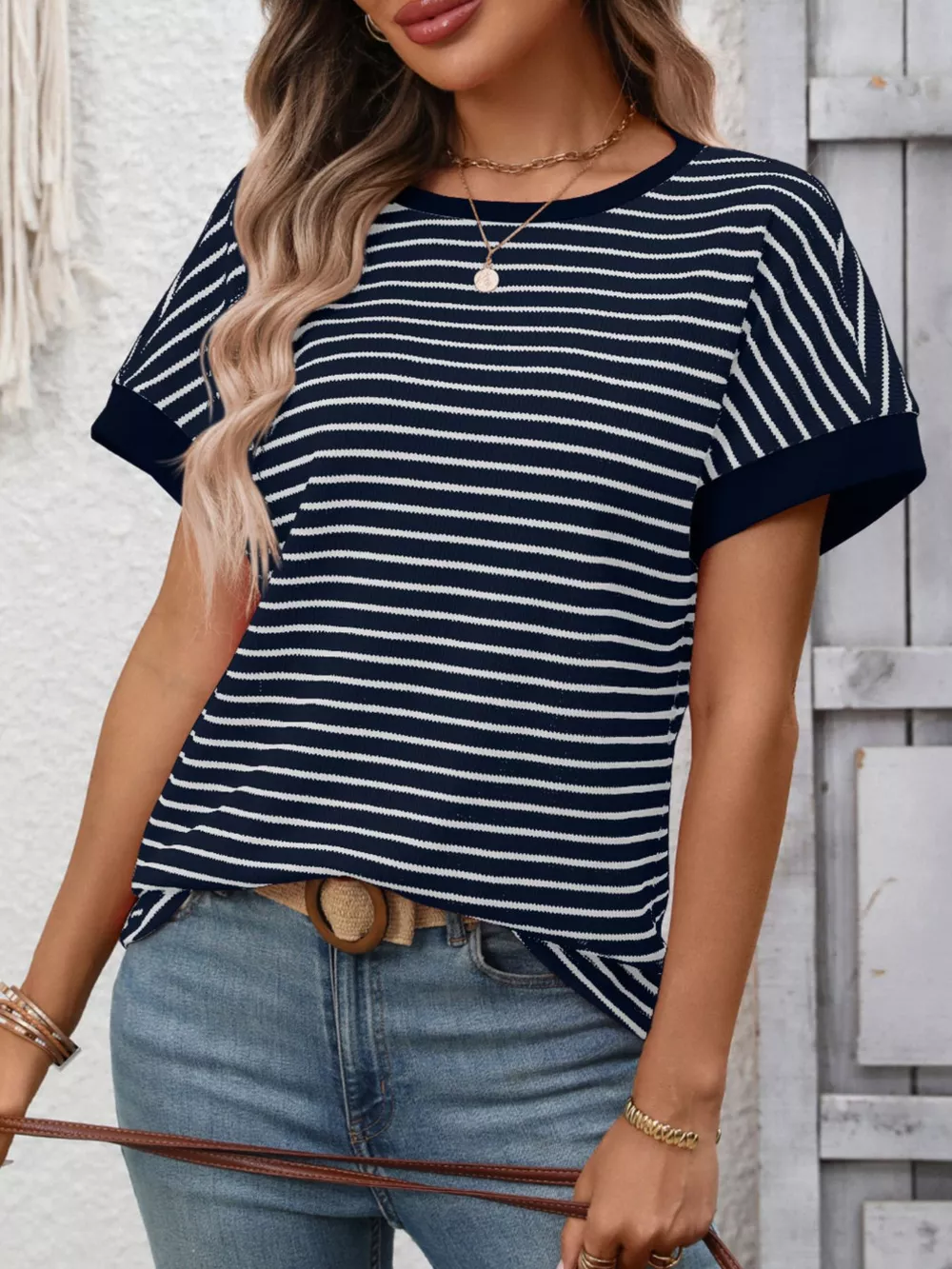 Striped Ribbed Knit Short Sleeve T-Shirt