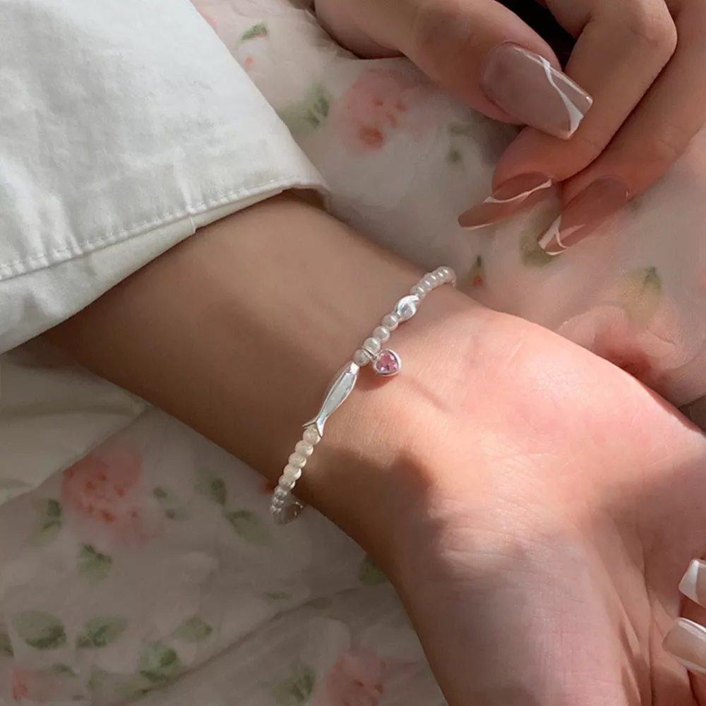 Pearl Fish Bracelet with Heart Charm