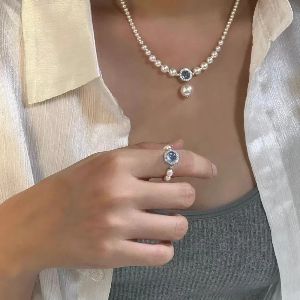 - Material:Synthetic Pearl,Natural stone,925 sterling silver