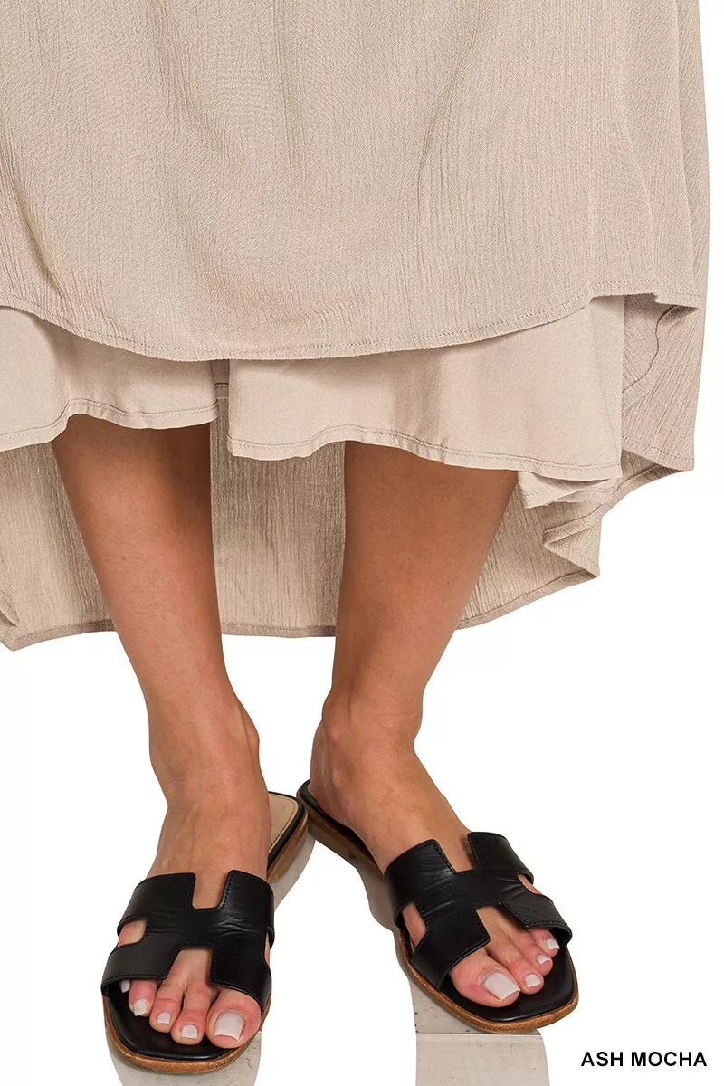 The woven crinkle strapless maxi dress is a breezy and elegant piece perfect for warm weather. Featuring a crinkled texture, this dress offers a relaxed and effortless look. The strapless design adds a touch of sophistication and showcases shoulders beautifully. With a maxi length, this dress is both stylish and versatile for various occasions. Ideal for summer gatherings or beach outings, this dress is a must-have for a chic and comfortable wardrobe.