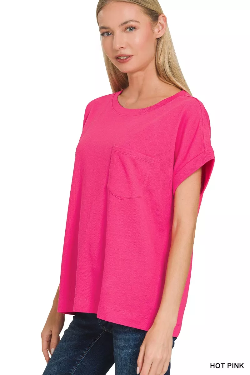 Zenana Cuffed Front Pocket Short Sleeve Tee