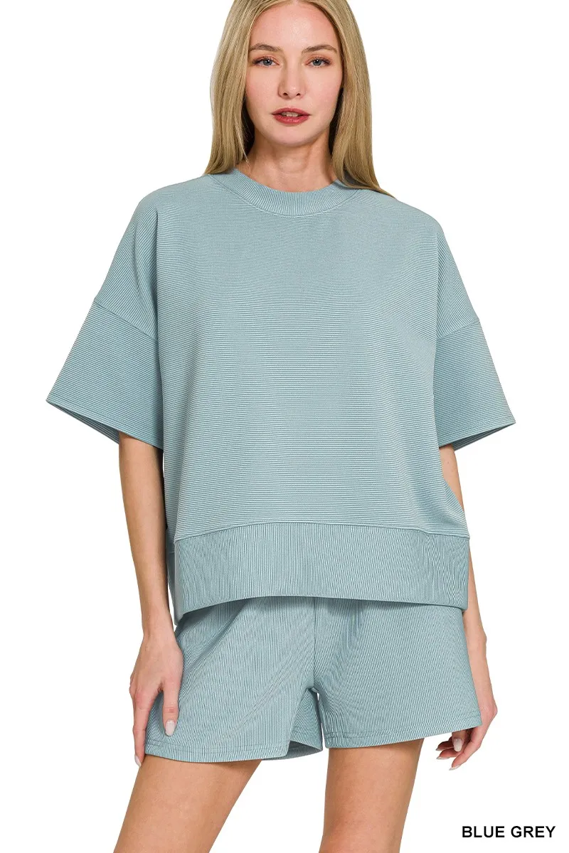 Zenana Ribbed Round Neck Waist Banded Tee & Shorts Set