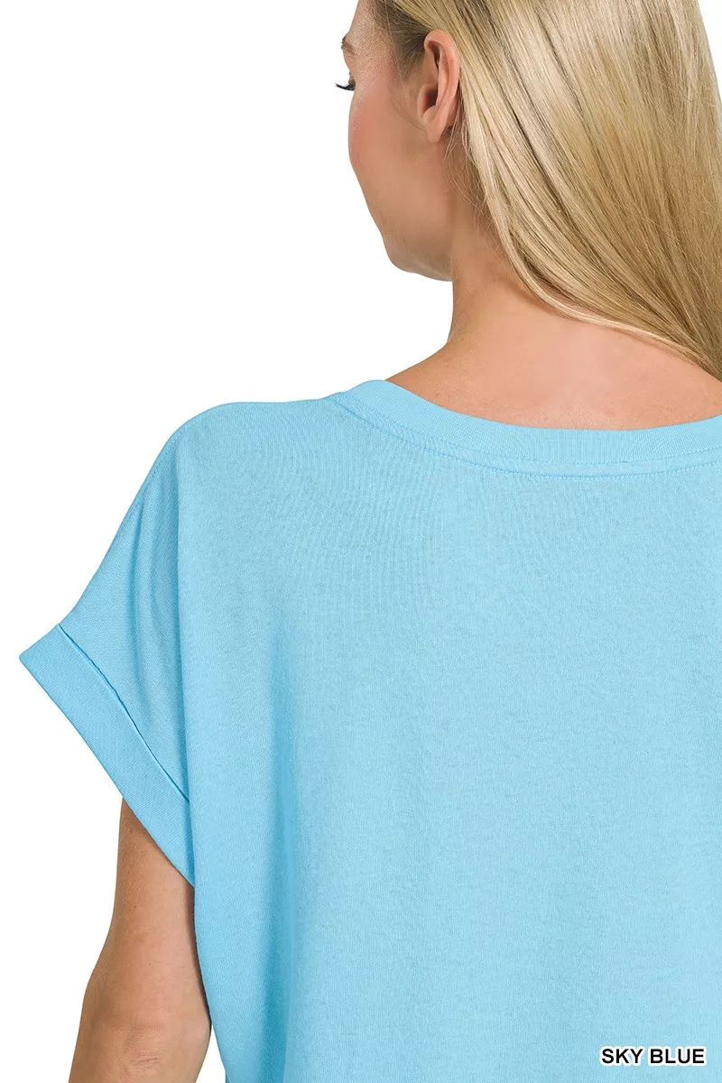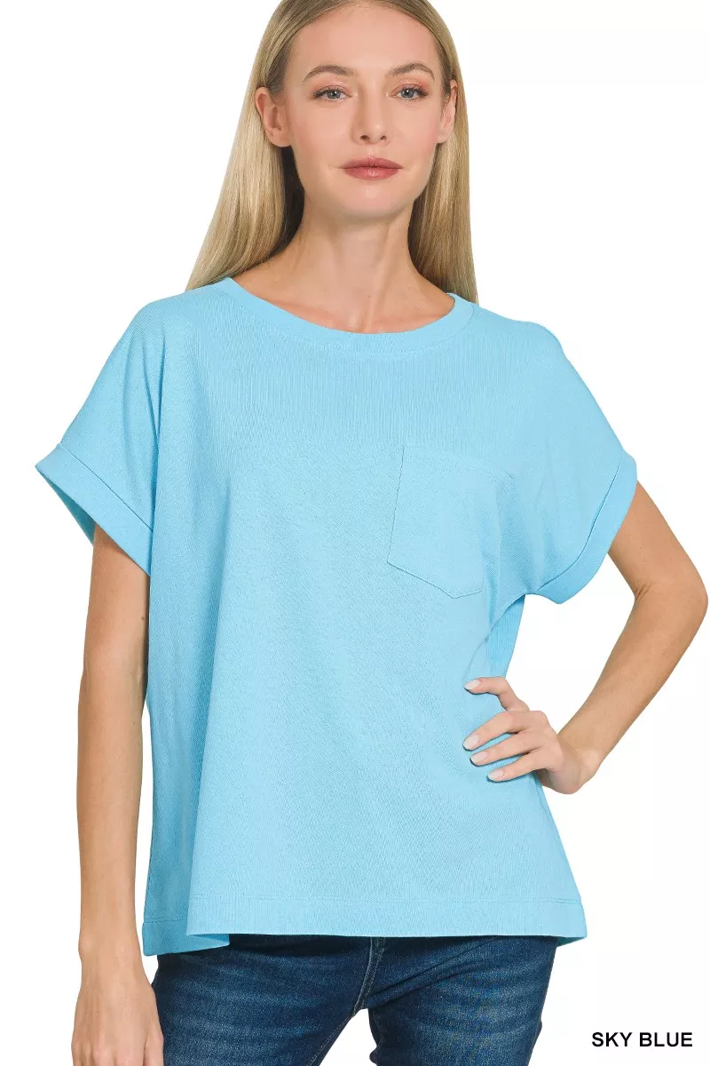 Zenana Cuffed Front Pocket Short Sleeve Tee