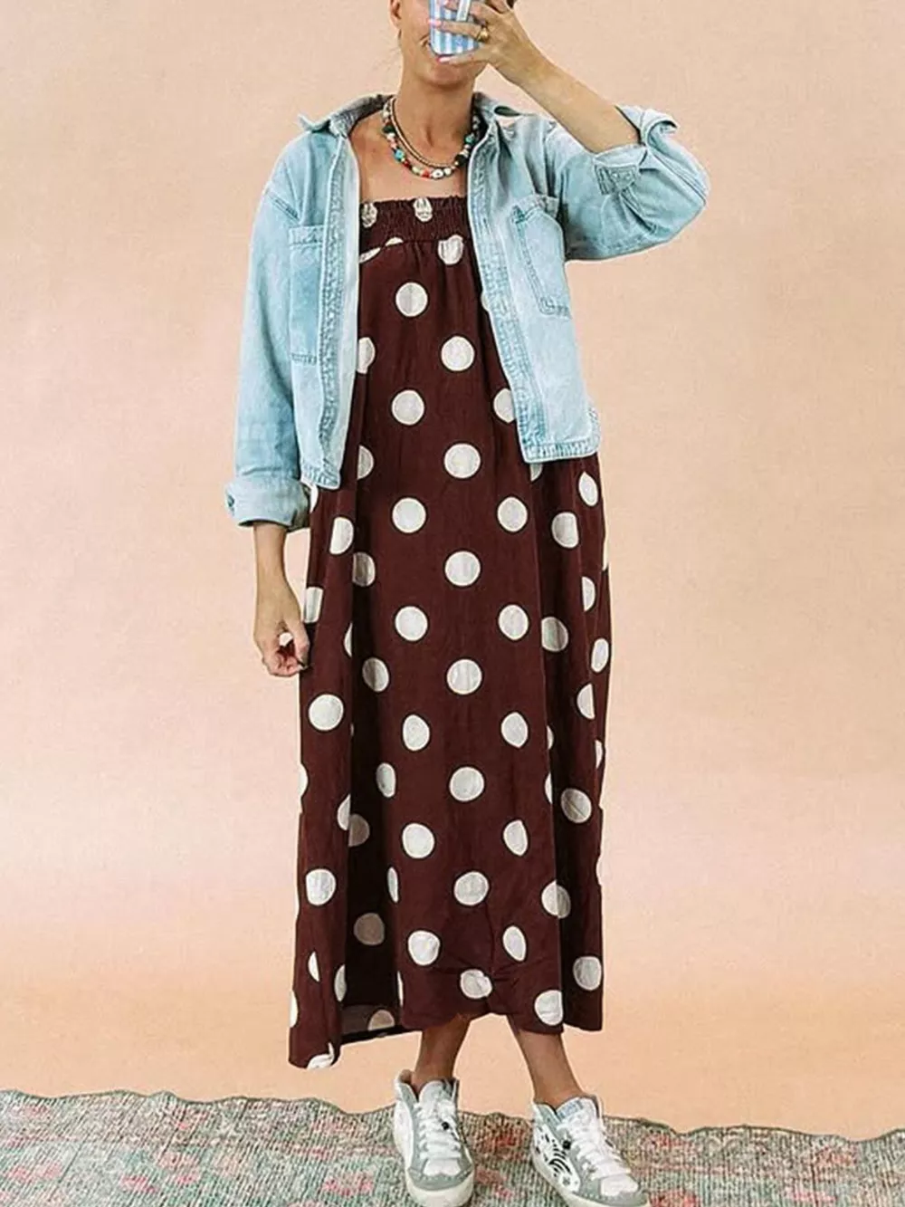 Polka Dot Spaghetti Strap Maxi Dress