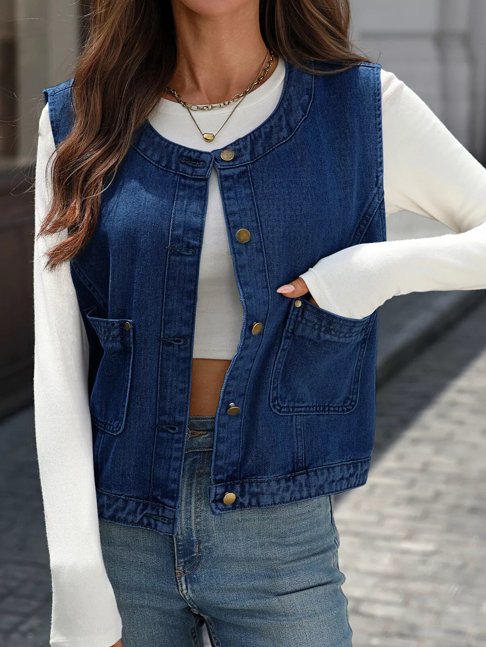 Button-Down Denim Vest