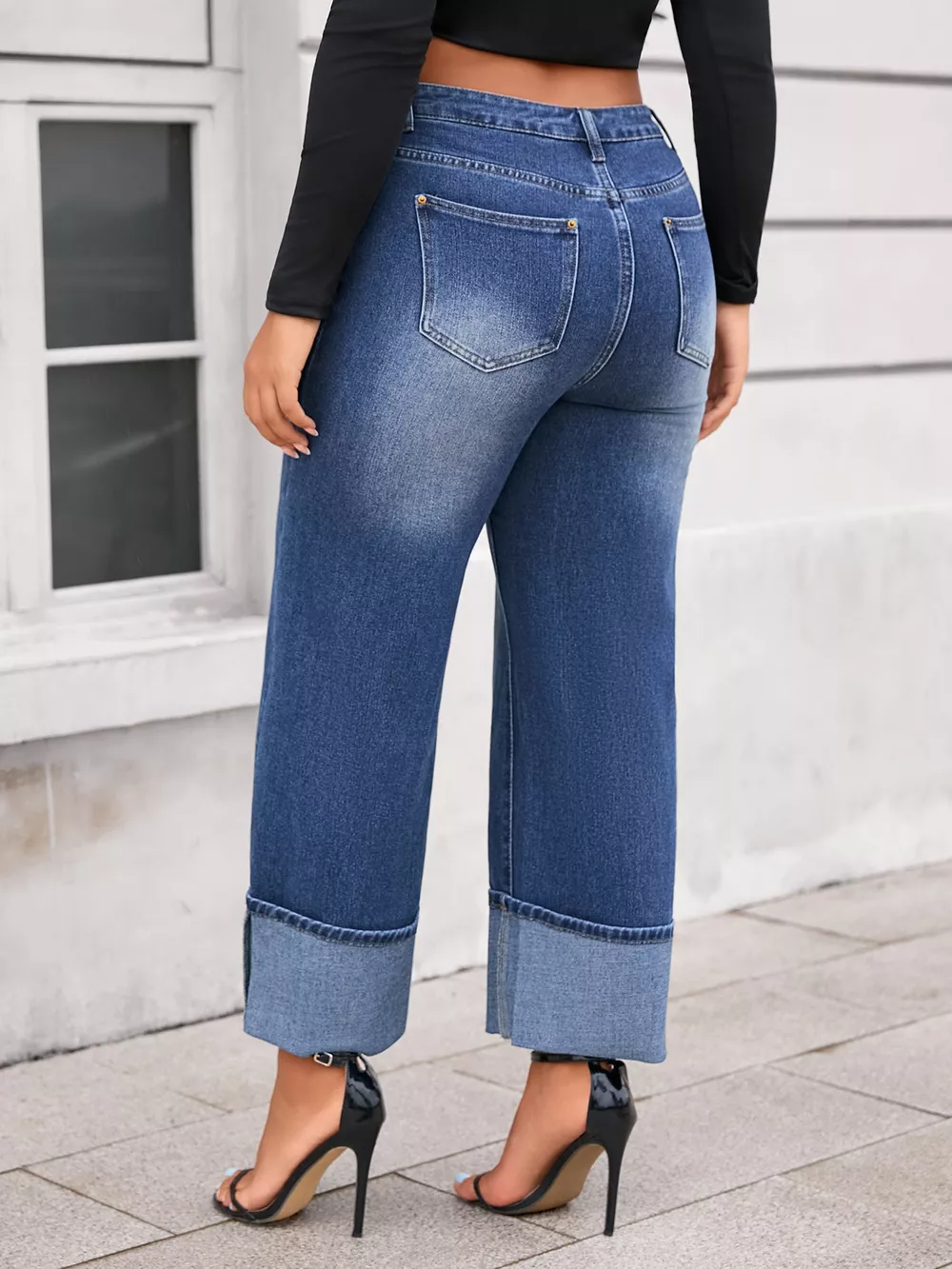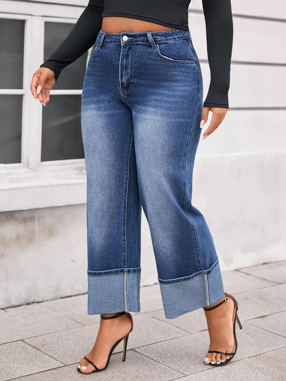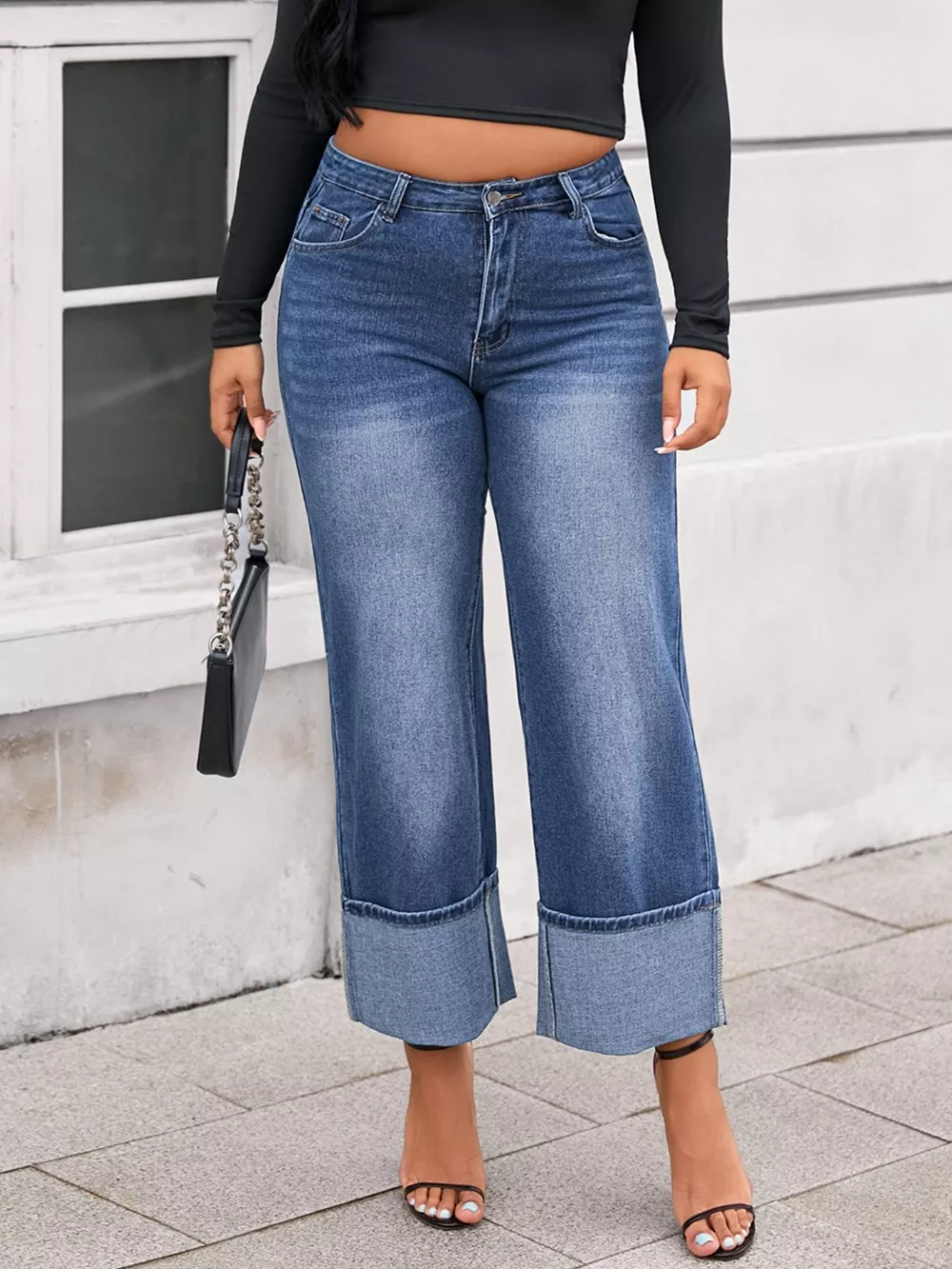 Plus Size High Waist Cuffed Wide Leg Jeans