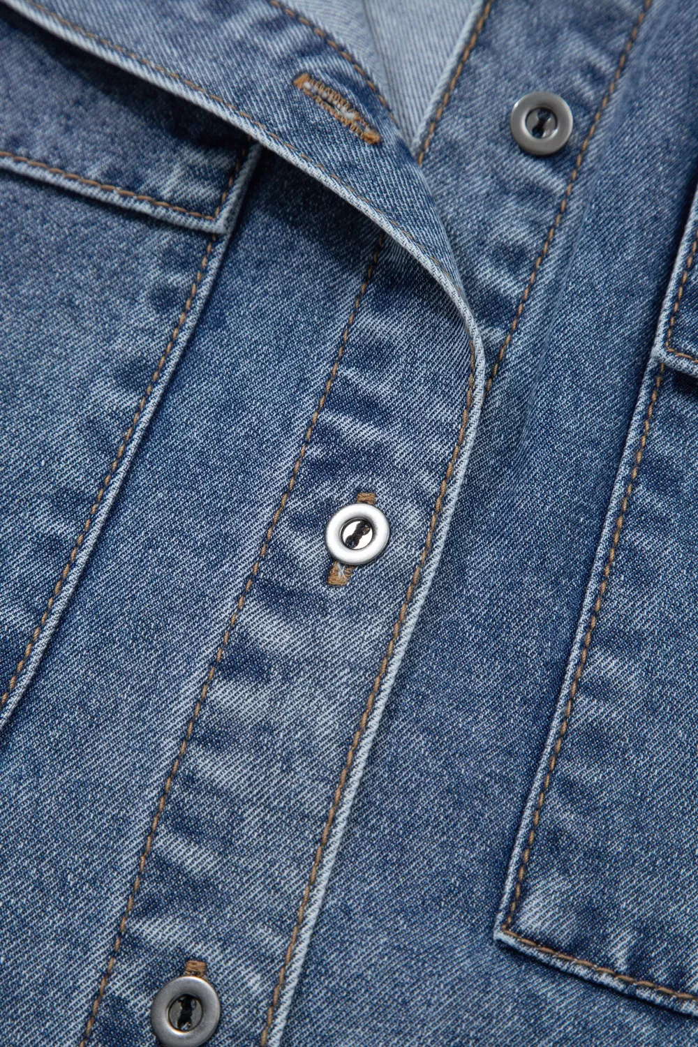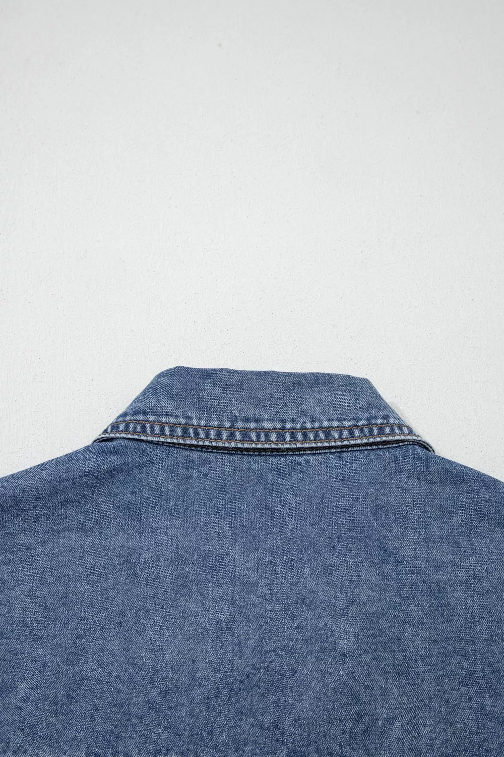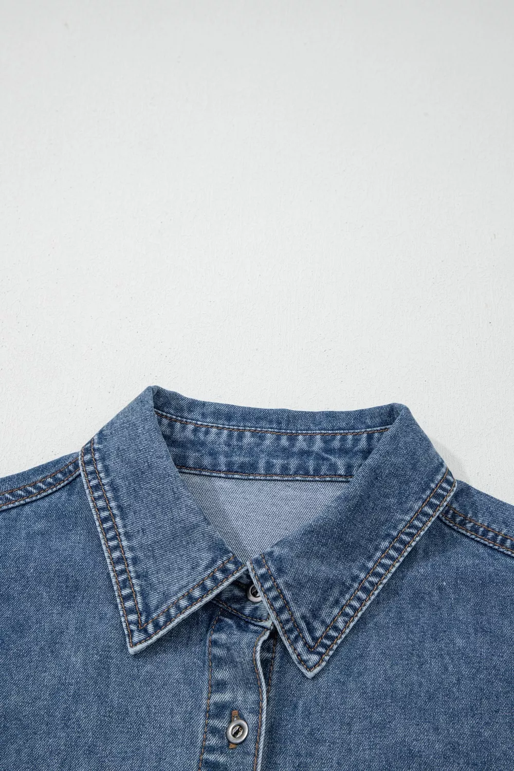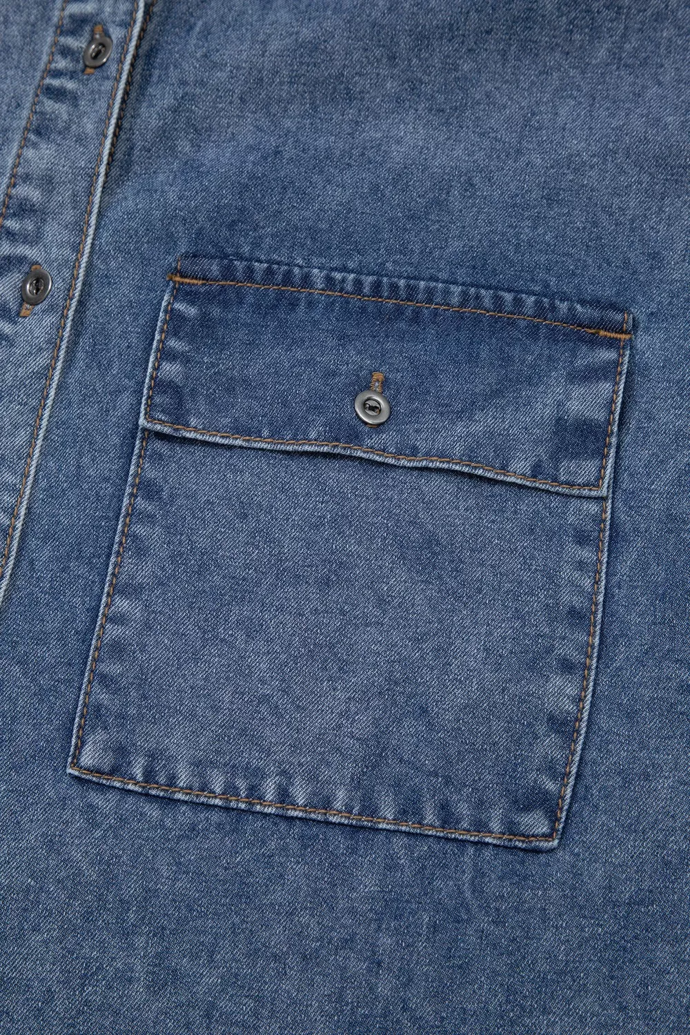 Button Flap Pocket Cuffed Short Sleeve Denim Shacket