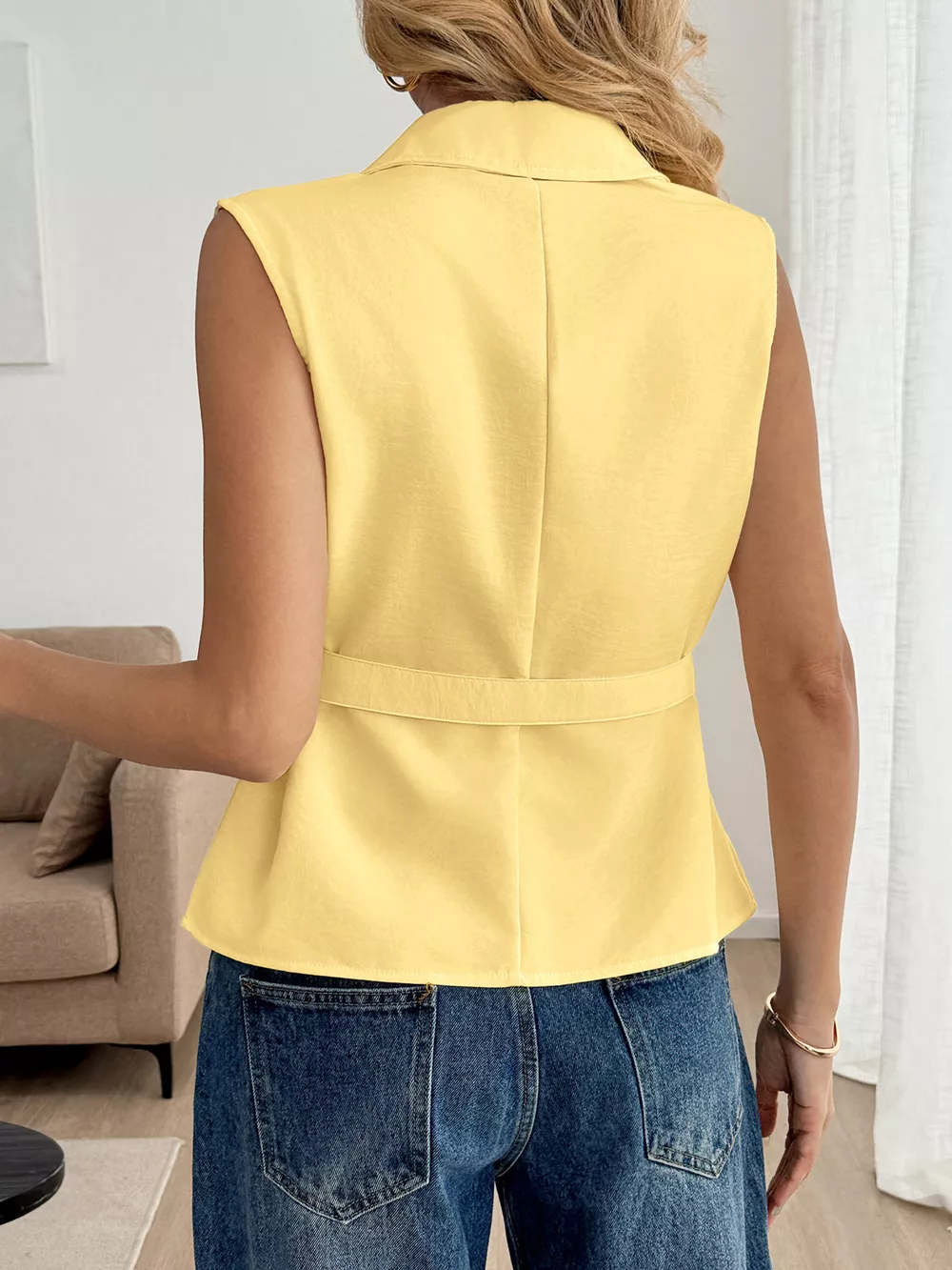 Button Front Sleeveless Blouse