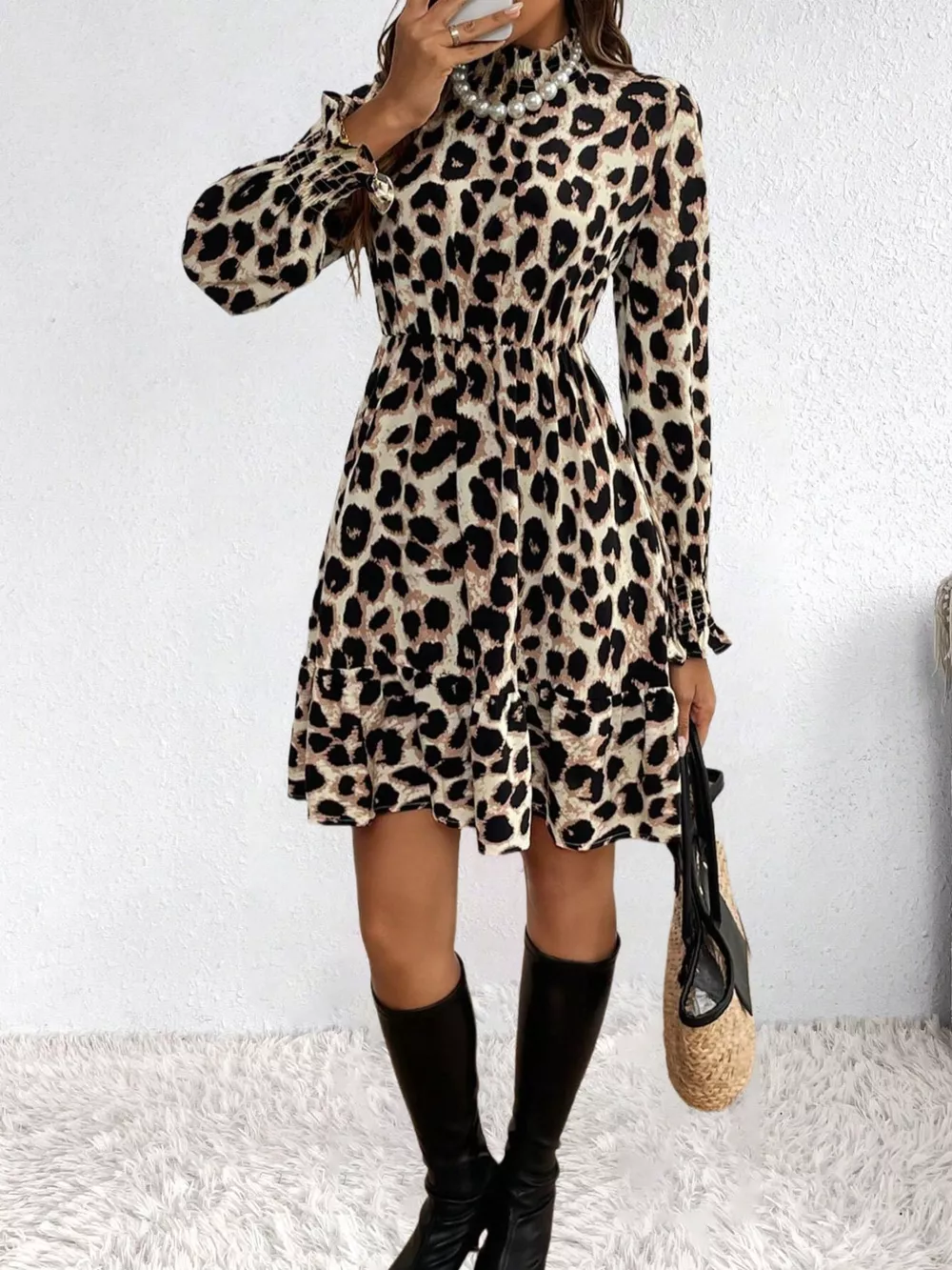 Leopard Print Ruffle Hem Mini Dress