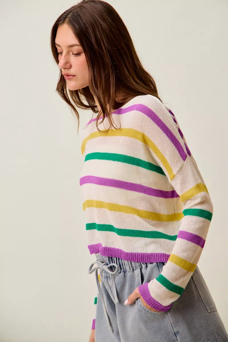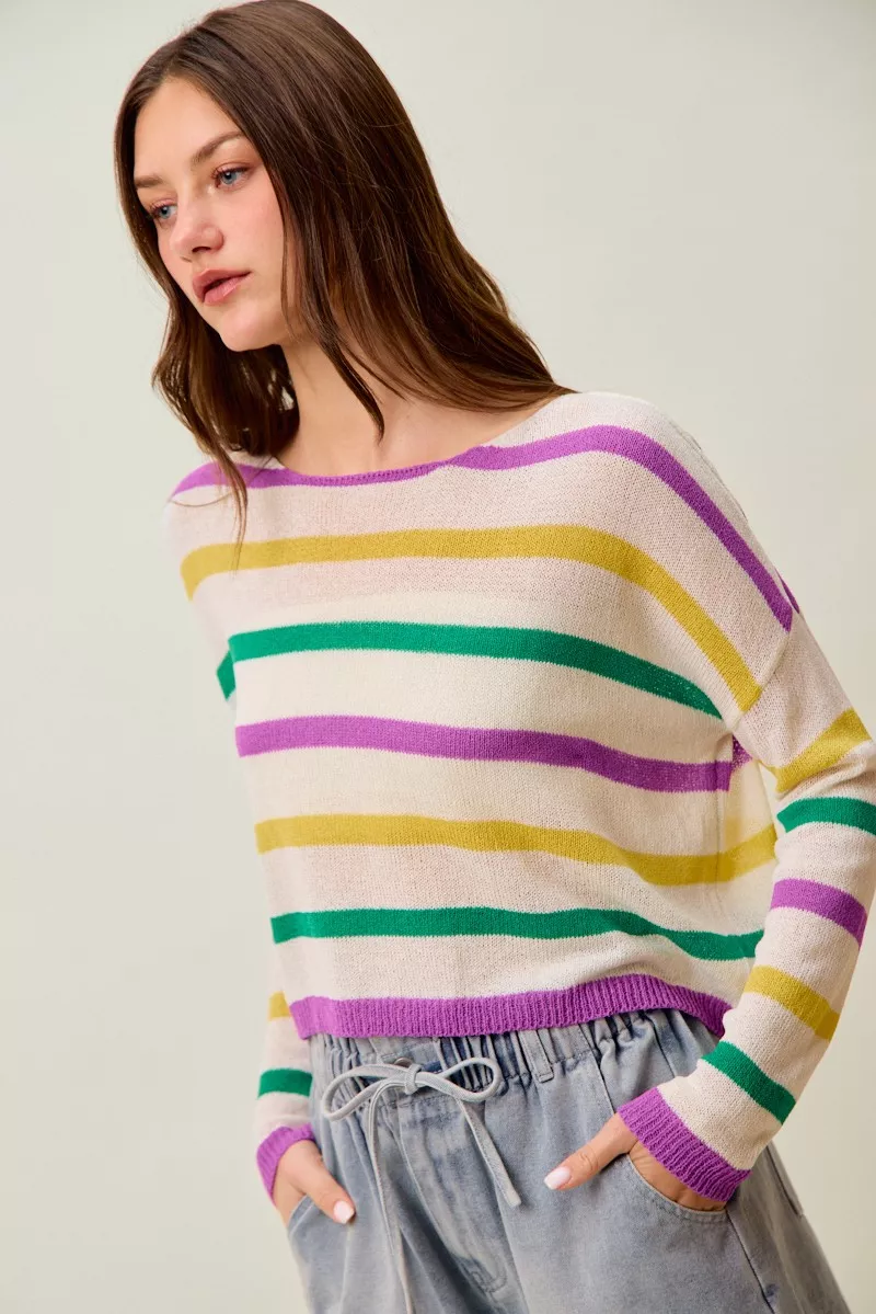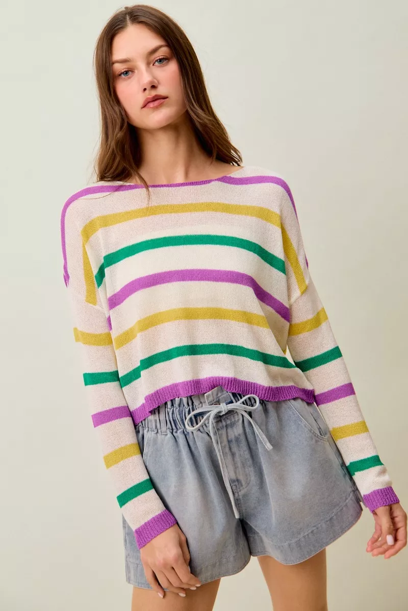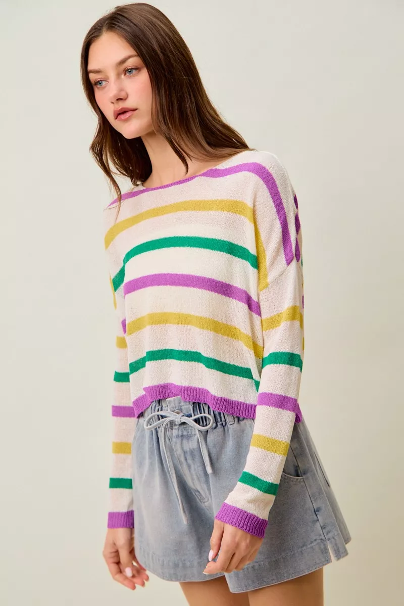 SO ME Mardi Gras Color Stripe Lightweight Sweater Top