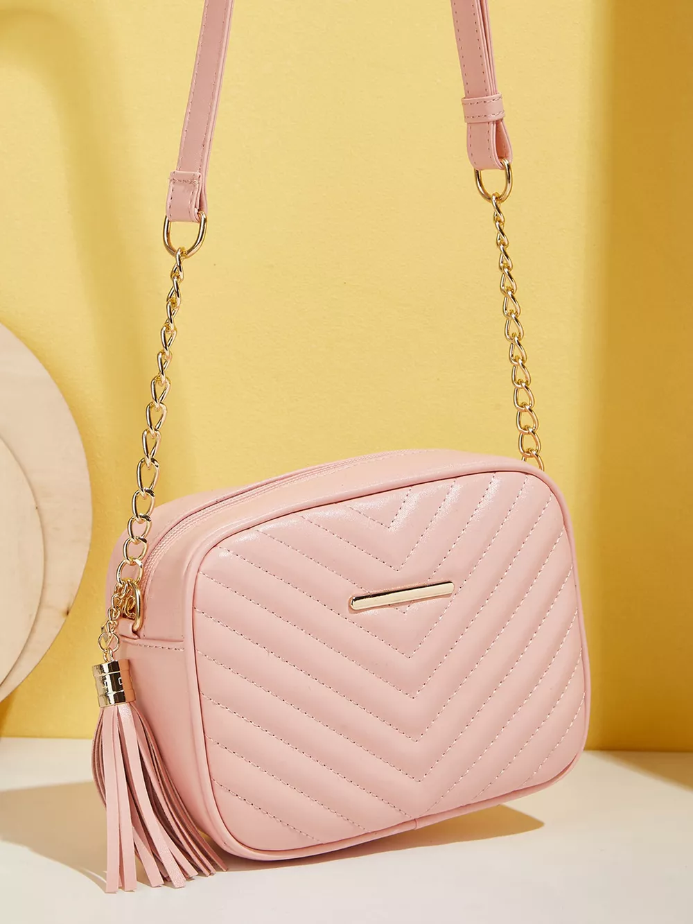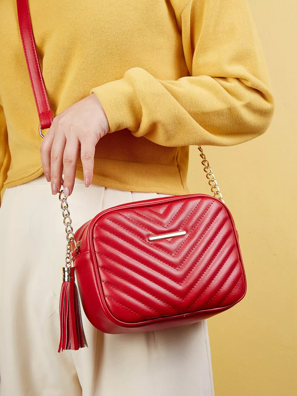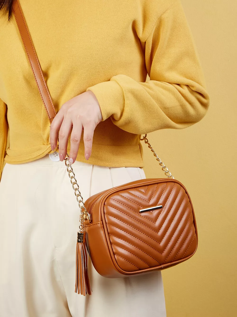 Quilted PU Leather Crossbody Bag with Tassel