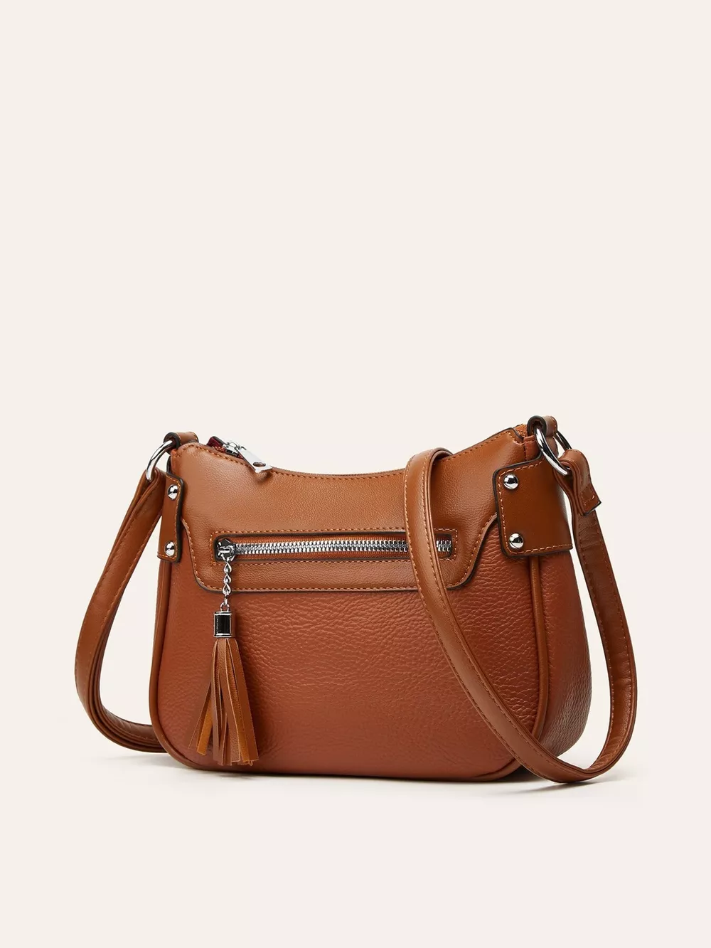 Tassel Decor PU Leather Crossbody Bag