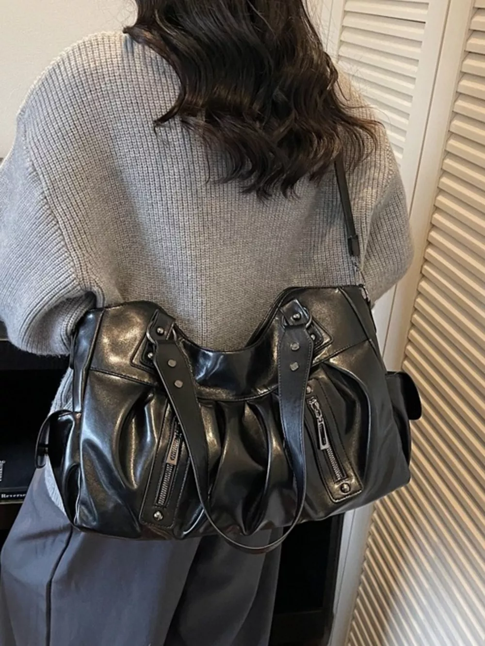 Ruched Leather Crossbody Bag