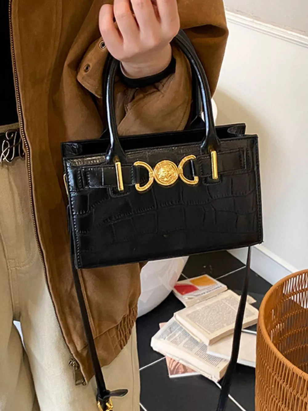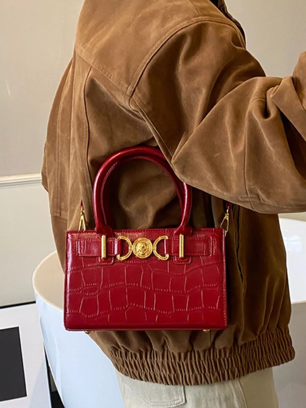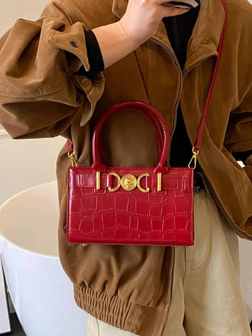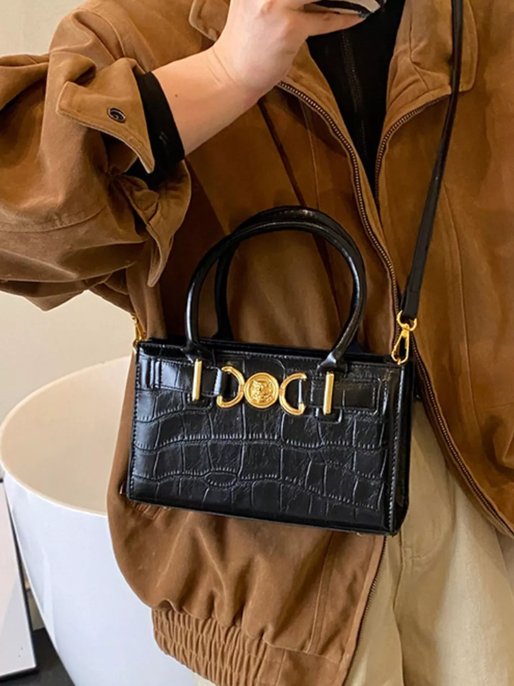 Crocodile Embossed Crossbody Bag