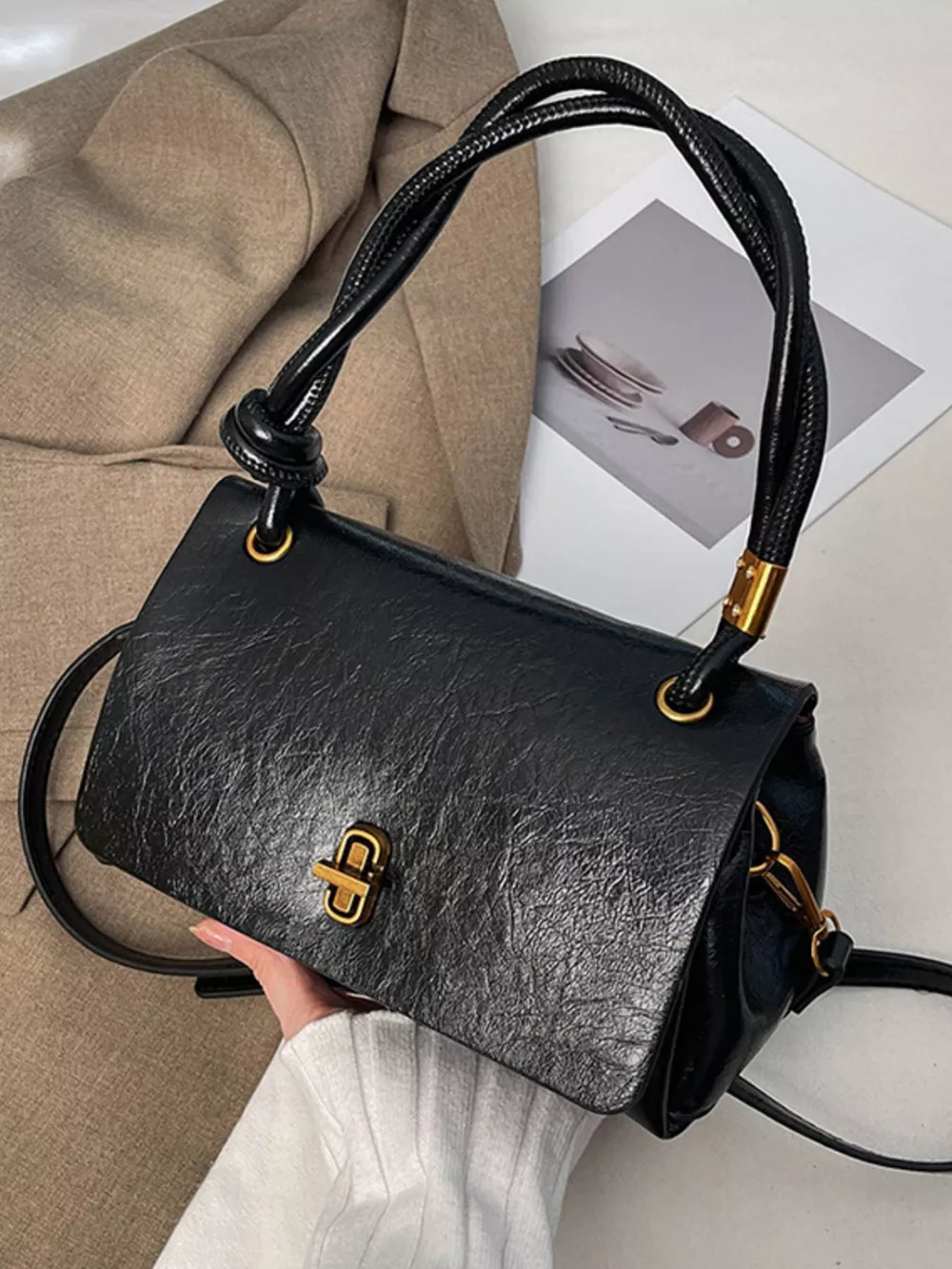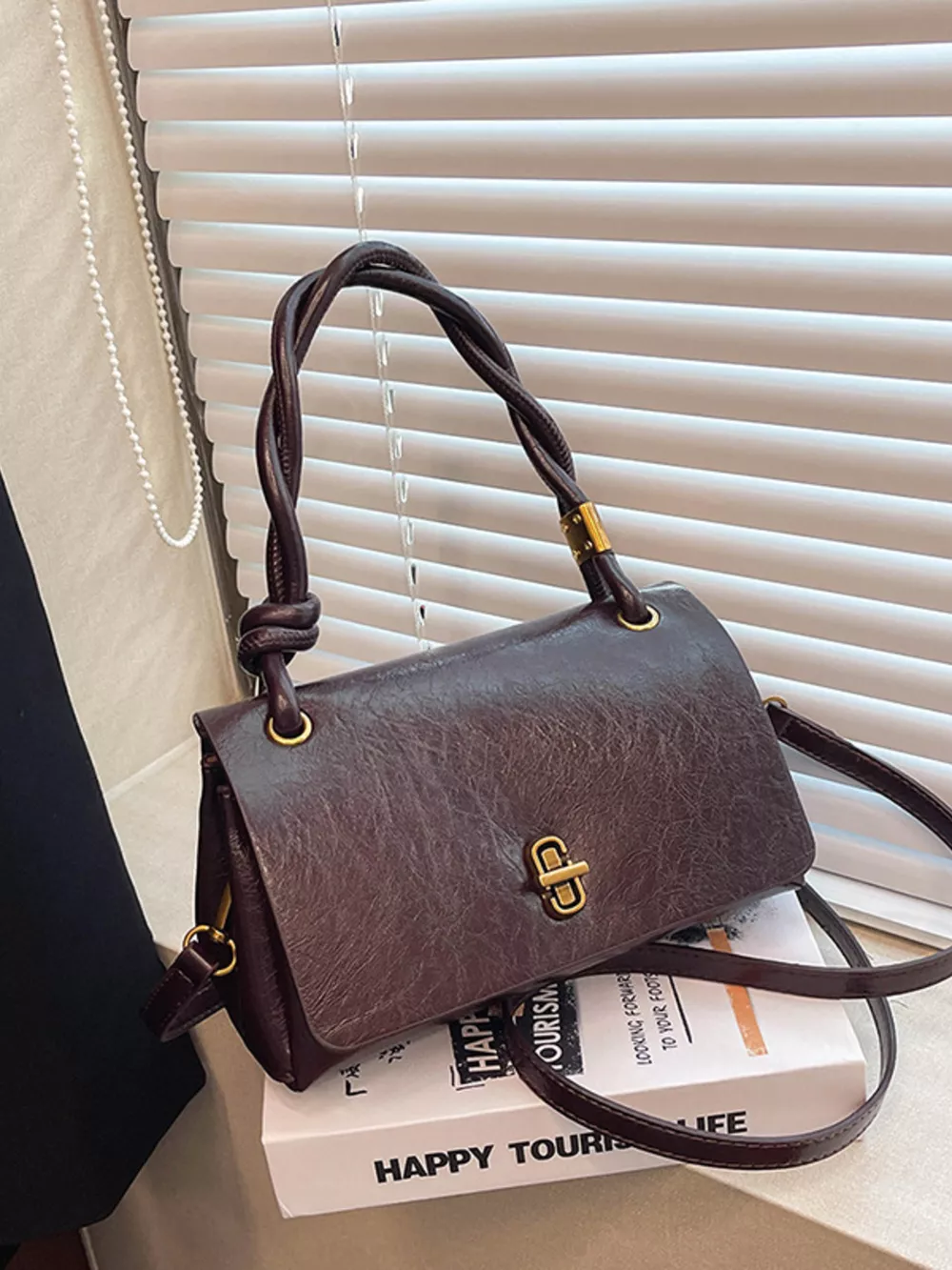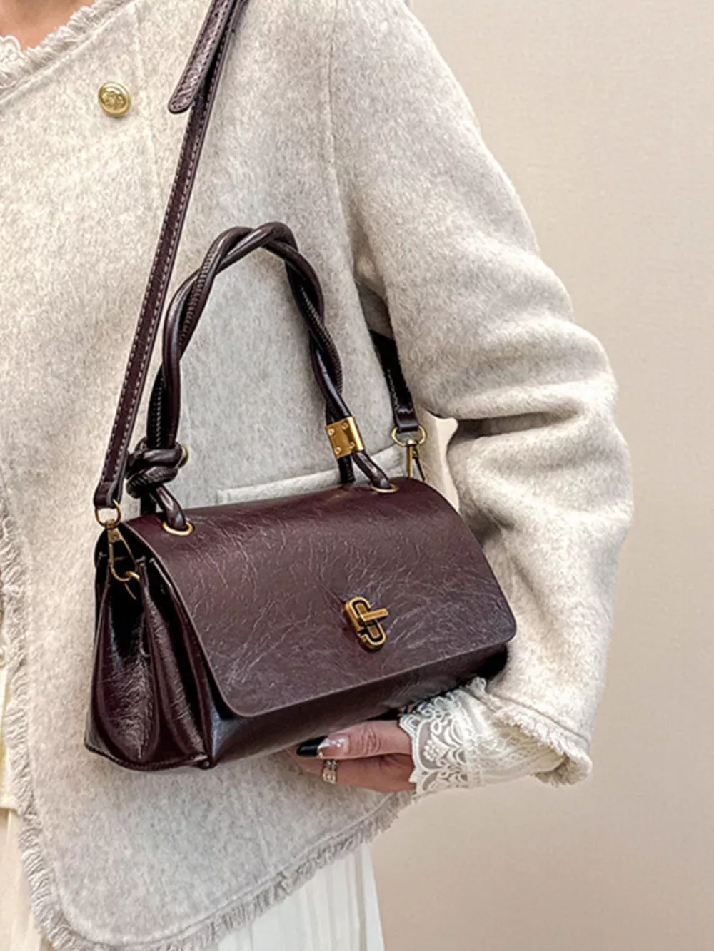 Twisted Handle Flap Crossbody Bag