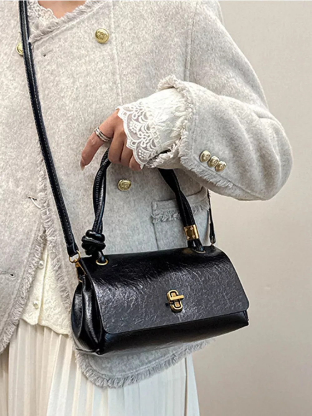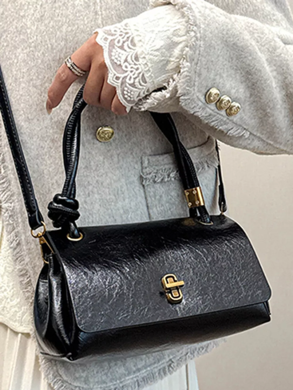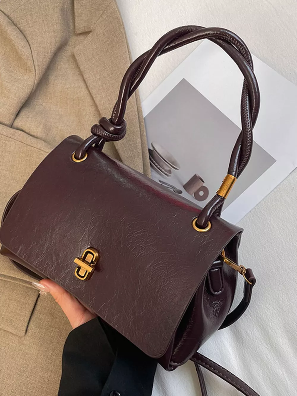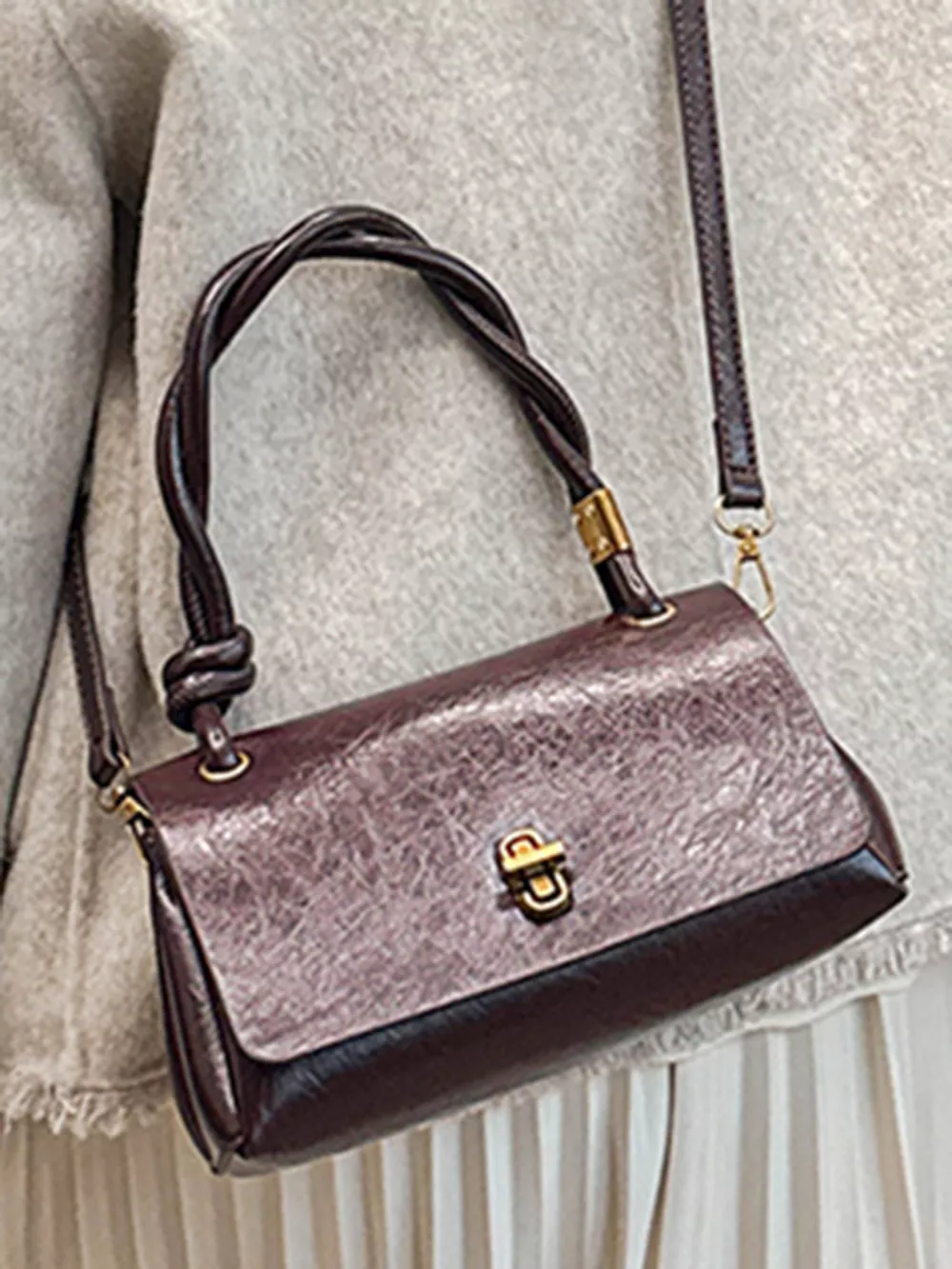 Twisted Handle Flap Crossbody Bag