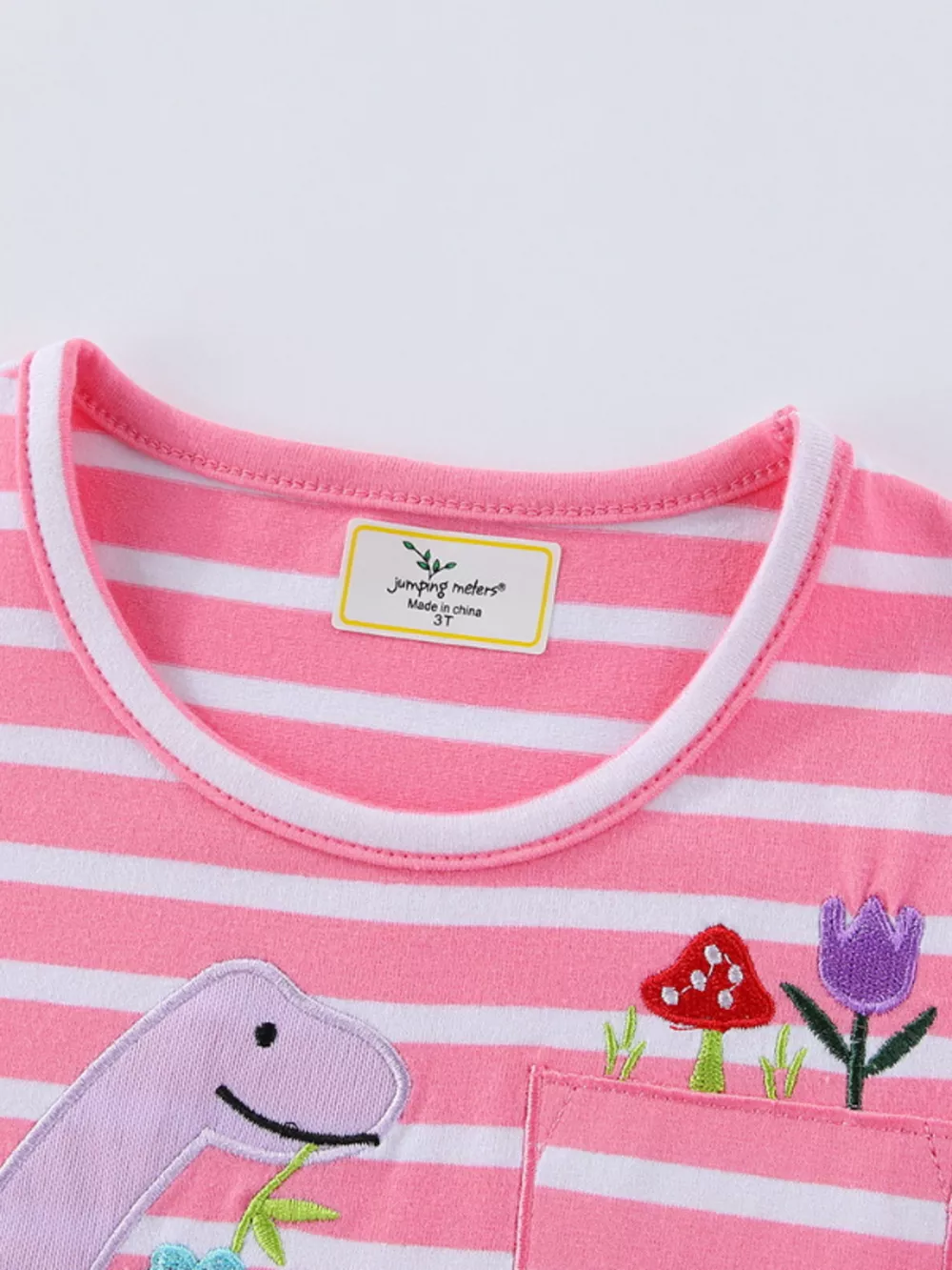 Children's Striped Dinosaur Embroidered Casual Dress