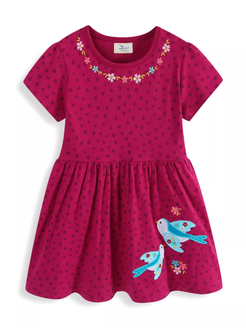Children's Floral Embroidered Bird Applique Dress