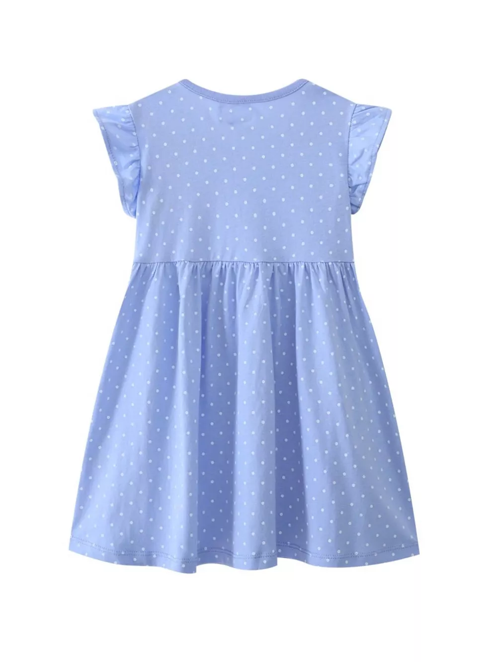 Children's Polka Dot Bunny Embroidered Ruffle Sleeve Dress