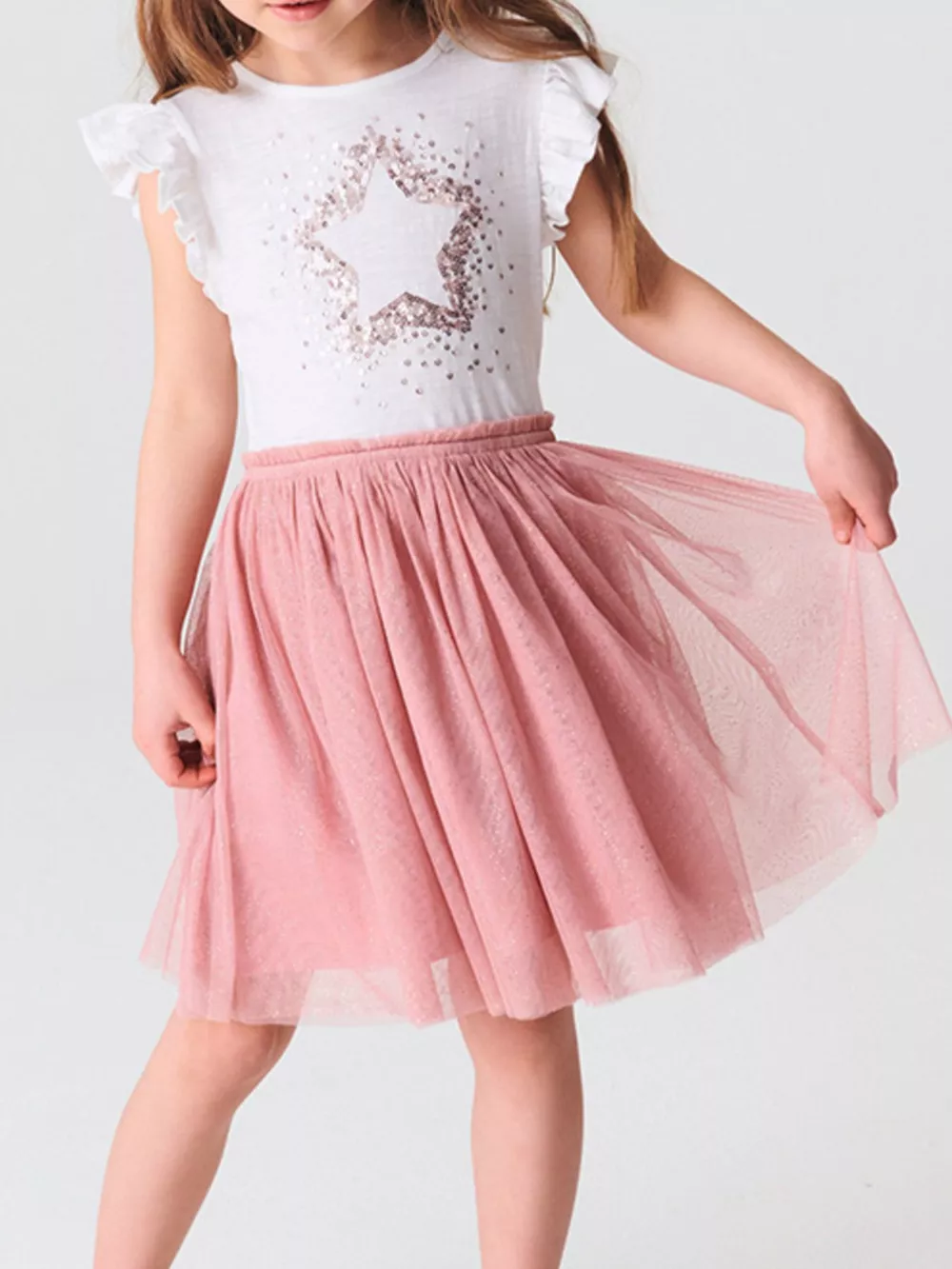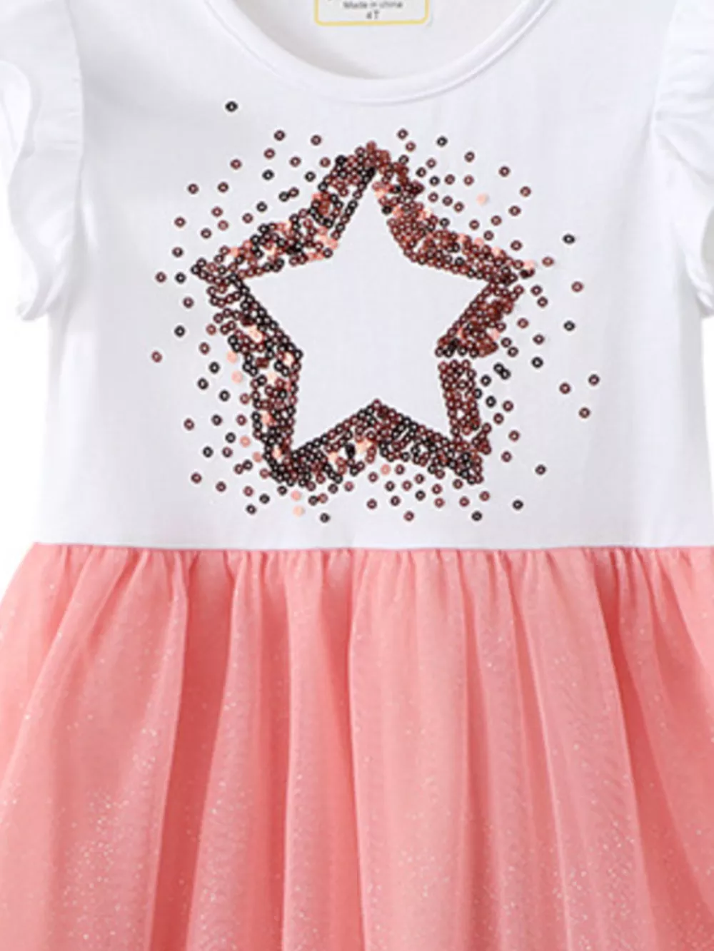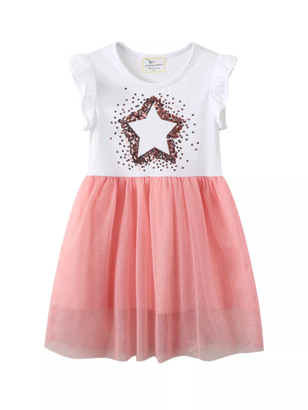 Children's Star Sequin Tulle Ruffled Sleeveless Dress