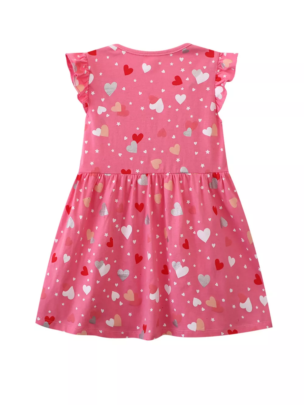 Children's Heart Print Ruffle Sleeve Casual Dress